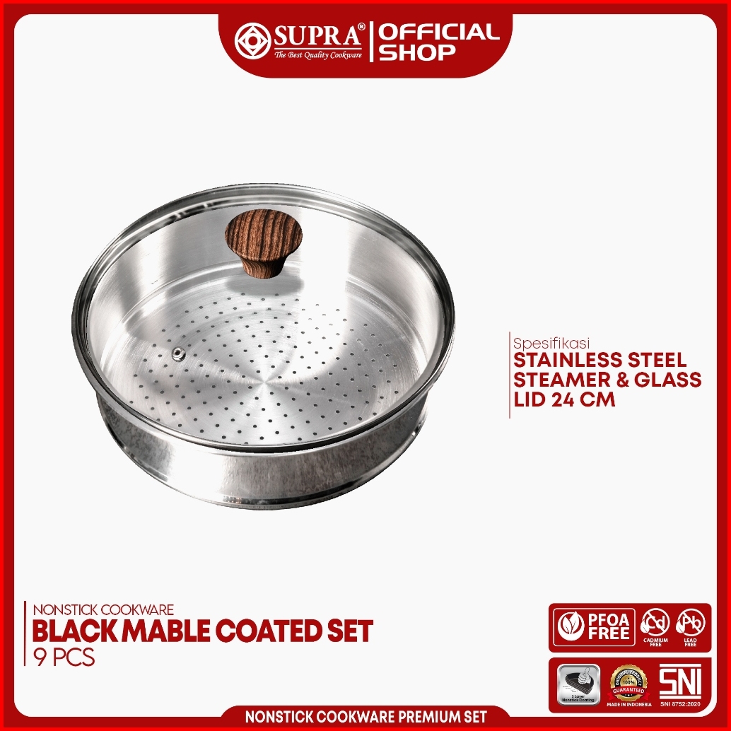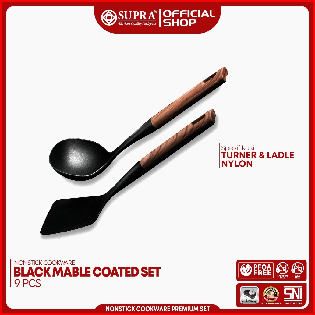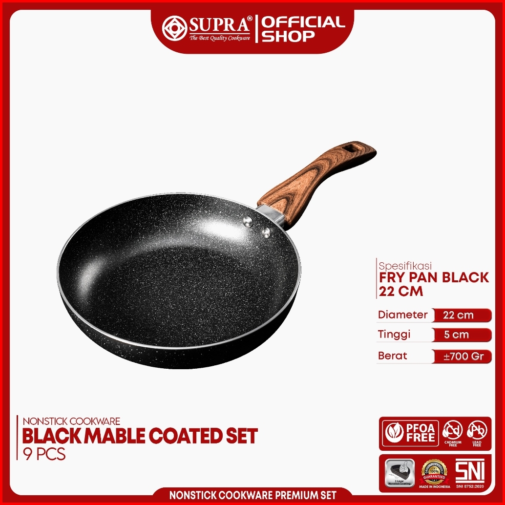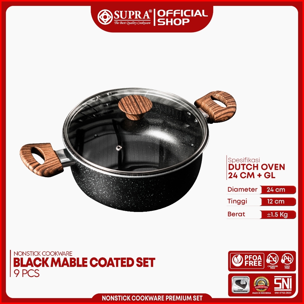 Supra Panci Set Anti Lengket 9 Pcs Black Marble Coated