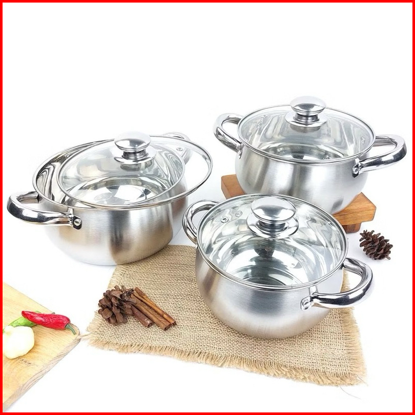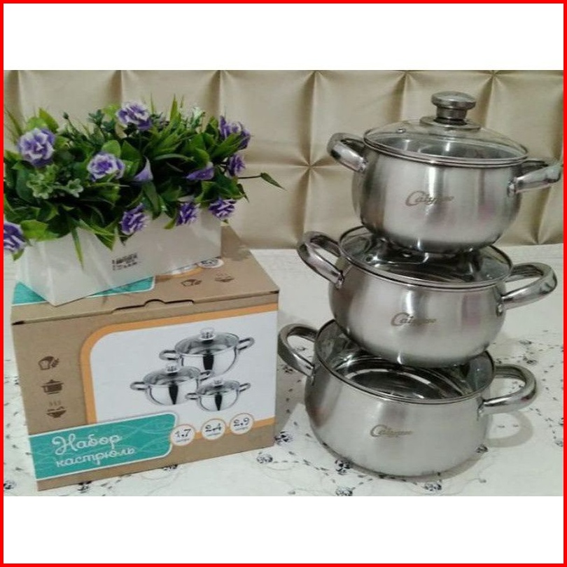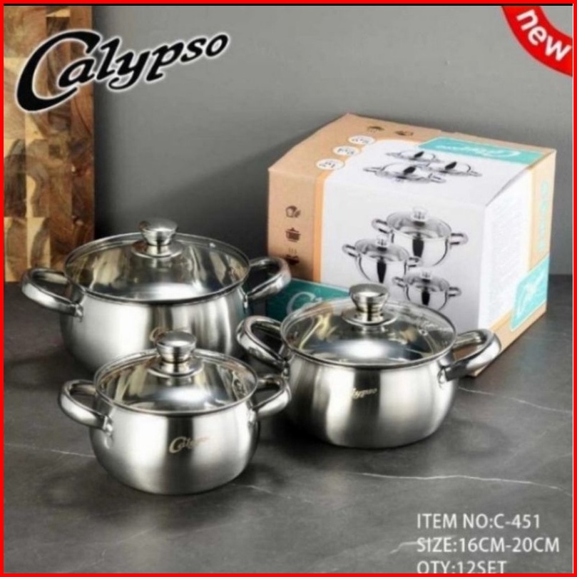 Panci Set Calypso Isi 3pcs Tebal Ukuran 16cm 18cm 20cm Panci Soup Pot Tutup Kaca Induksi Ukuran 16cm 18cm 20cm Panci 3 P
