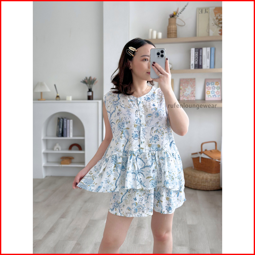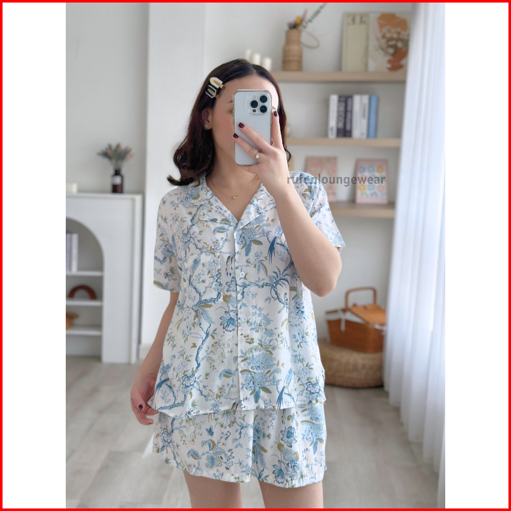 Rufen - One Set Baju Tidur Wanita Bahan Rayon Motif Terkini Setelan Celana Panjang Dan Pendek Wanita