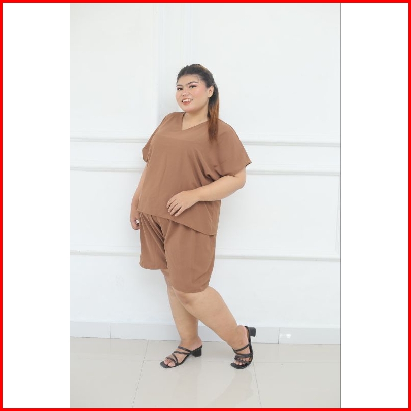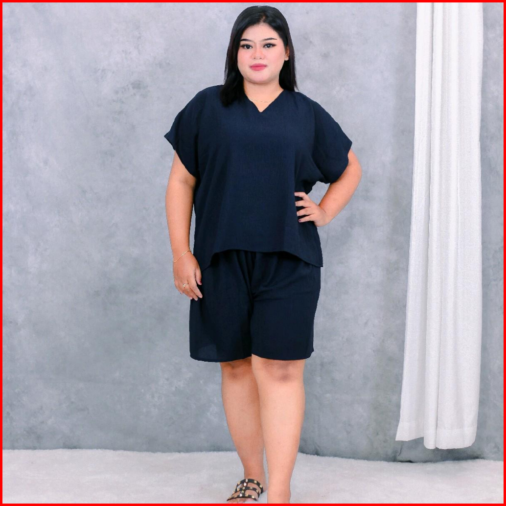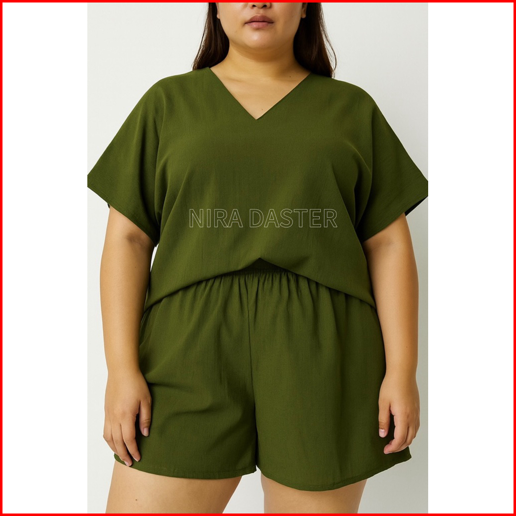 Nira Daster Setelan Jumbo Crinkle Airflow Polos Setelan Celana Pendek Wanita Setelan Lengan Pendek Setelan Wanita Baju R