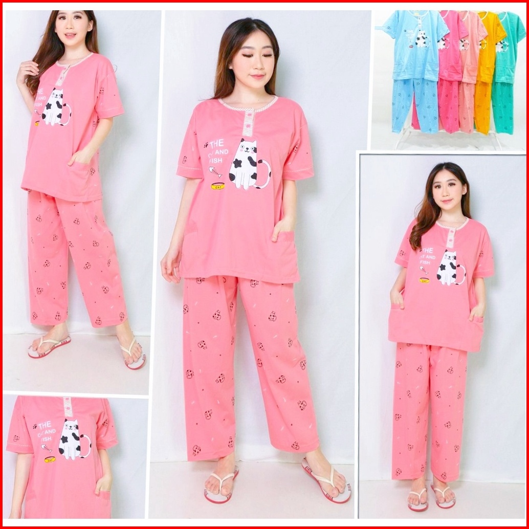 Dp007 Cp Tessa Jumbo Baju Tidur Wanita Dewasa Bahan Kaos Motif Terbaru Kualitas Premium