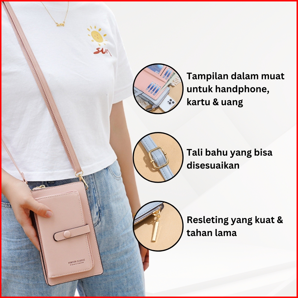 Khatin 409 Dompet Hp Touchscreen Ori Forever Classic Layar Sentuh Dompet Wanita Tas Selempang Wanita Tas Bahu Import