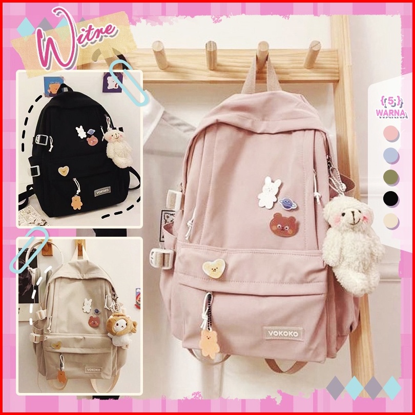 Tas Ransel Kuliah Tas Korean Style Fashion Backpack Termasuk Hadiah Gratis 5 Lencana Beruang