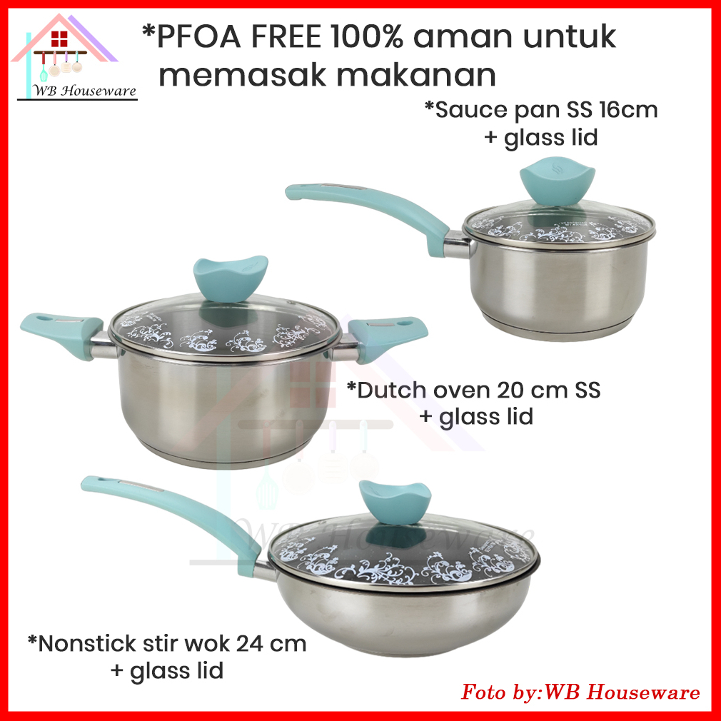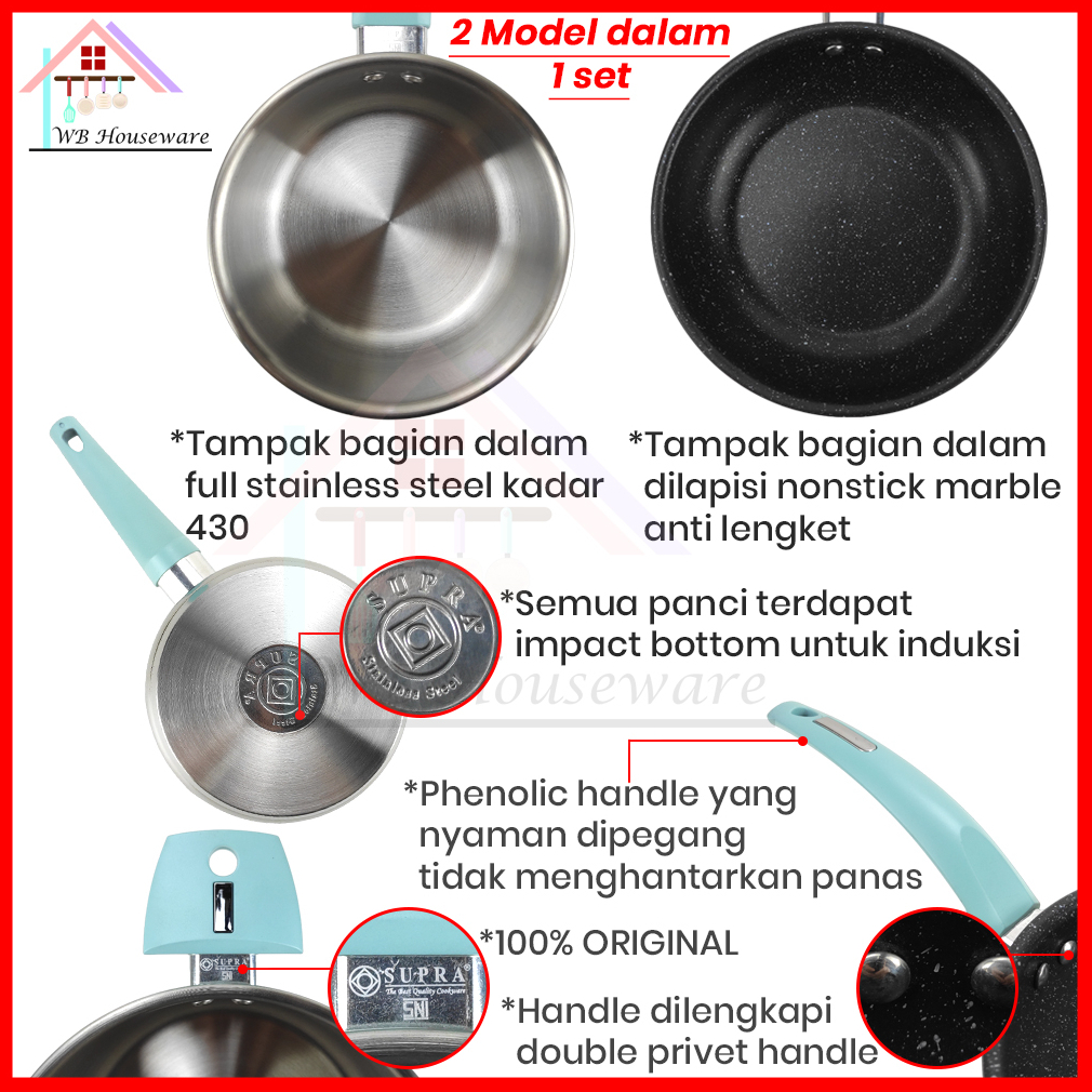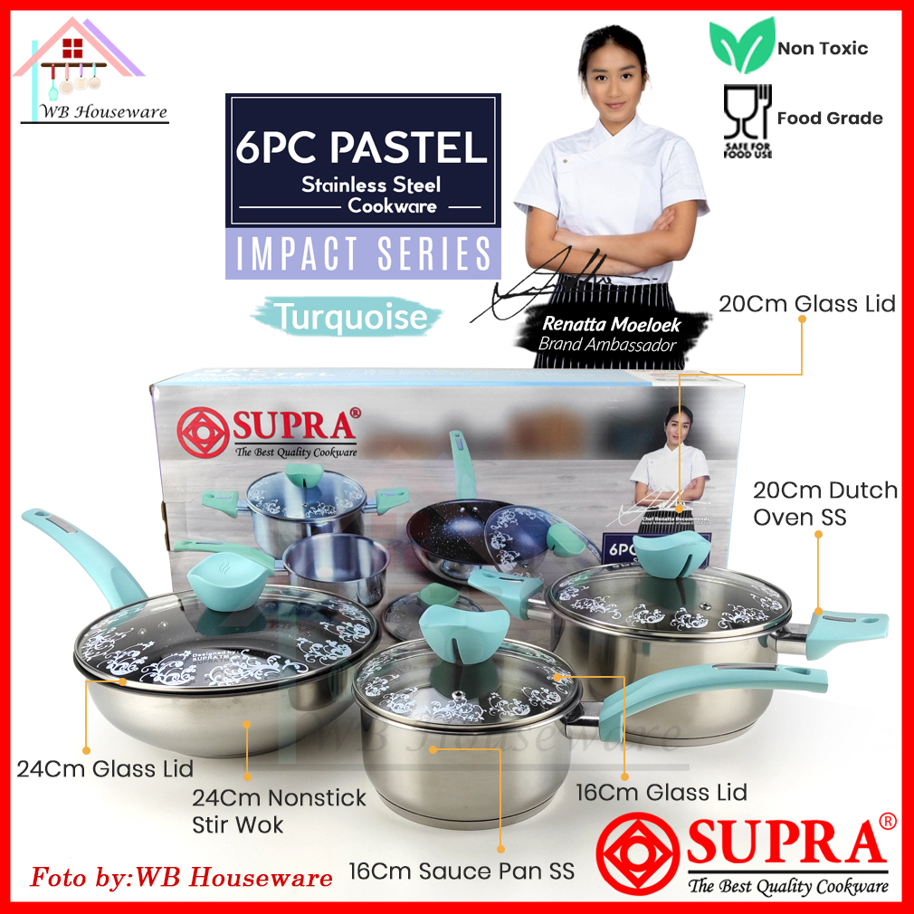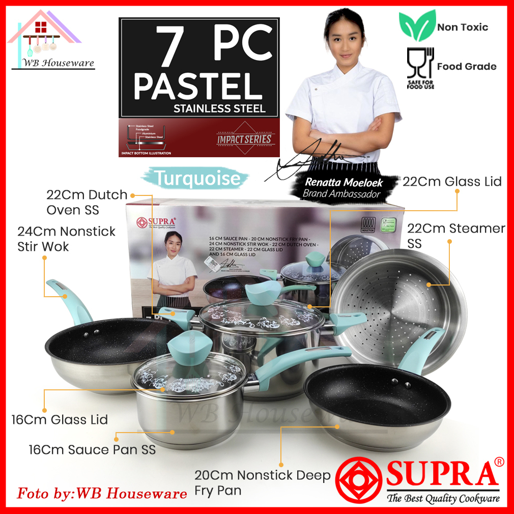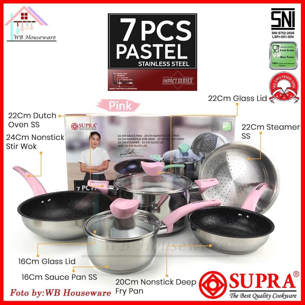 Panci Set Wajan Set Induksi Listrik 7pcs Cookware Set Stainless Pastel Supra