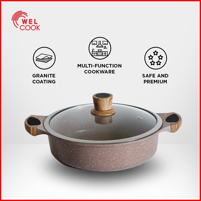 Welcook Panci Antilengket Granit Bulat Masak Low Casserole Frypan - 28 Cm