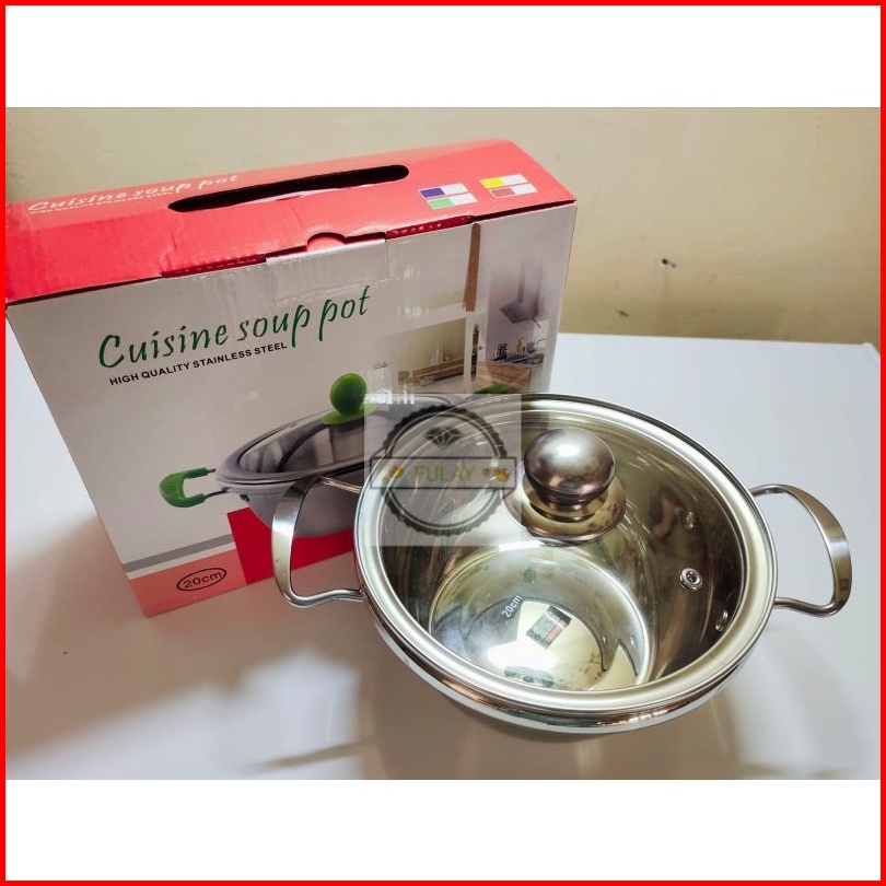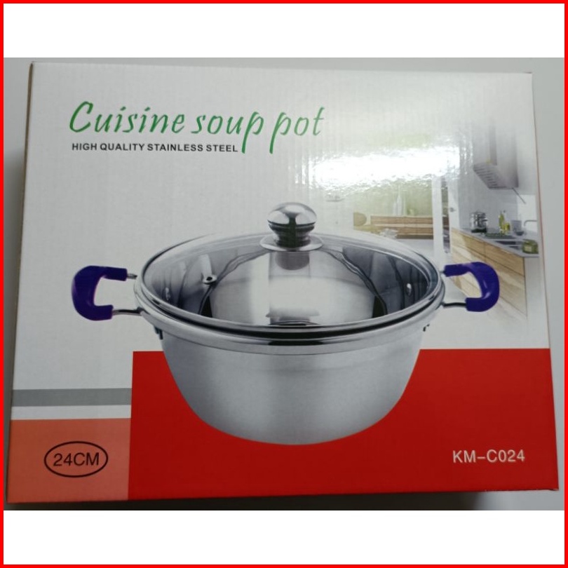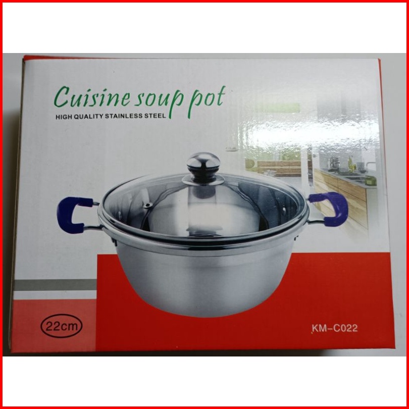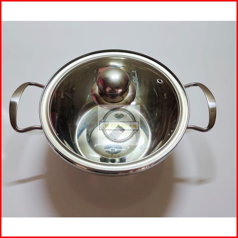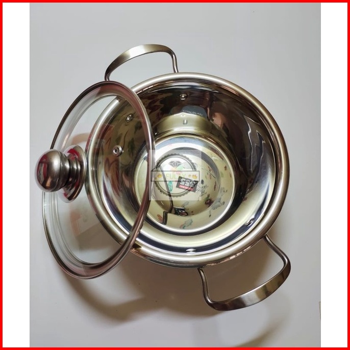 Panci Sup Soup Pot 18cm 20cm 22cm 24cm 26cm Stainless Stetutup Kaca Murah Gagang Stainlessel