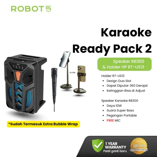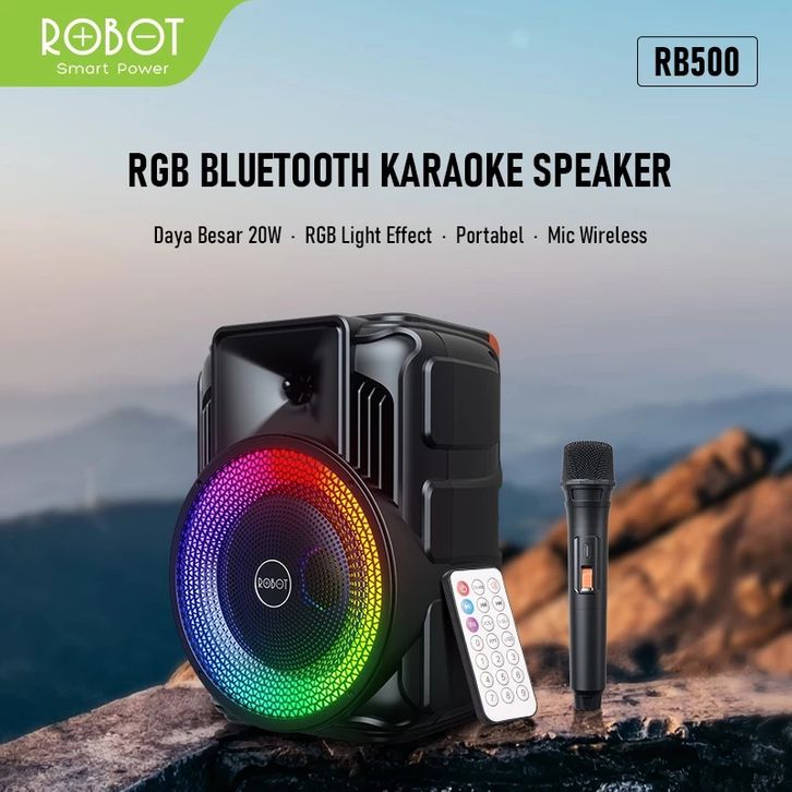 ROBOT SPEAKER BLUETOOTH KARAOKE 8 INCH PORTABLE AKTIF SUPER BASS RGB LIGHT HI-FI GRATIS MIC RB500