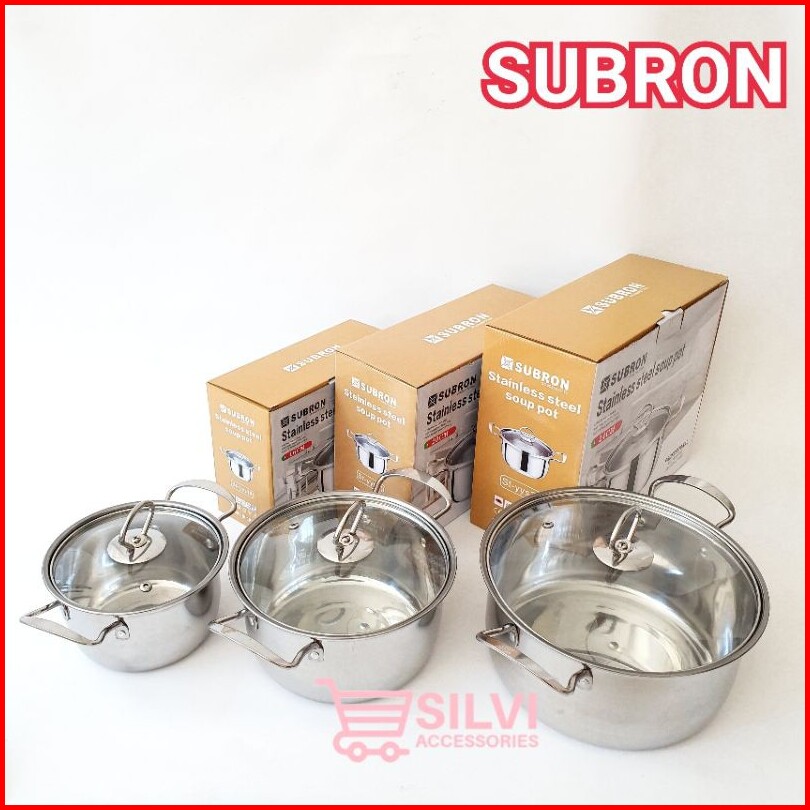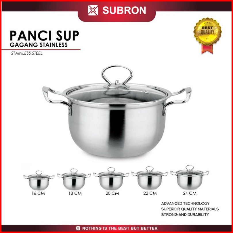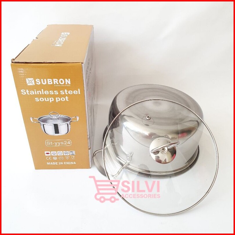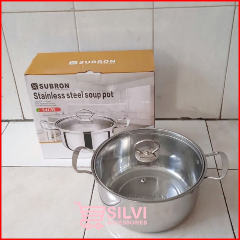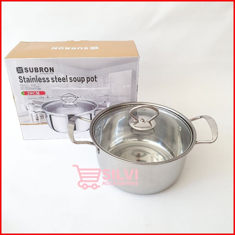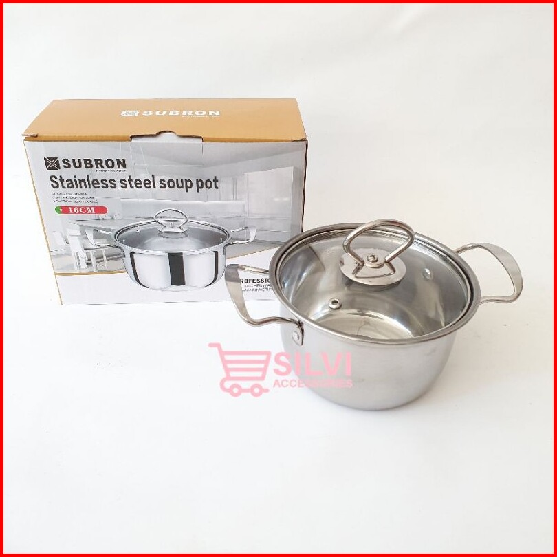 Panci Kuah Sop Sup Mpasi Subron Stainless 16cm 20cm 24cm Panci Sup Soup Pot Tutup Kaca Panci Mpasi