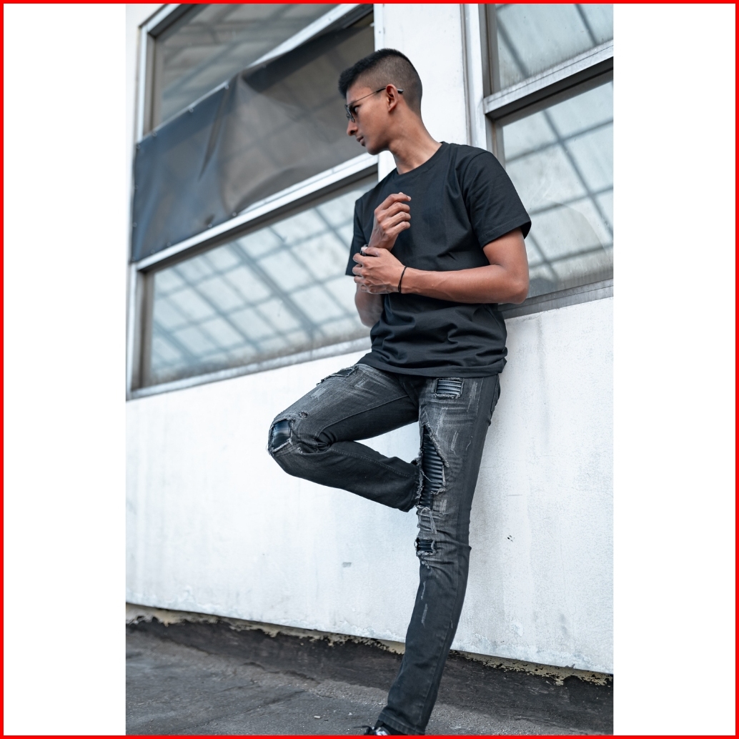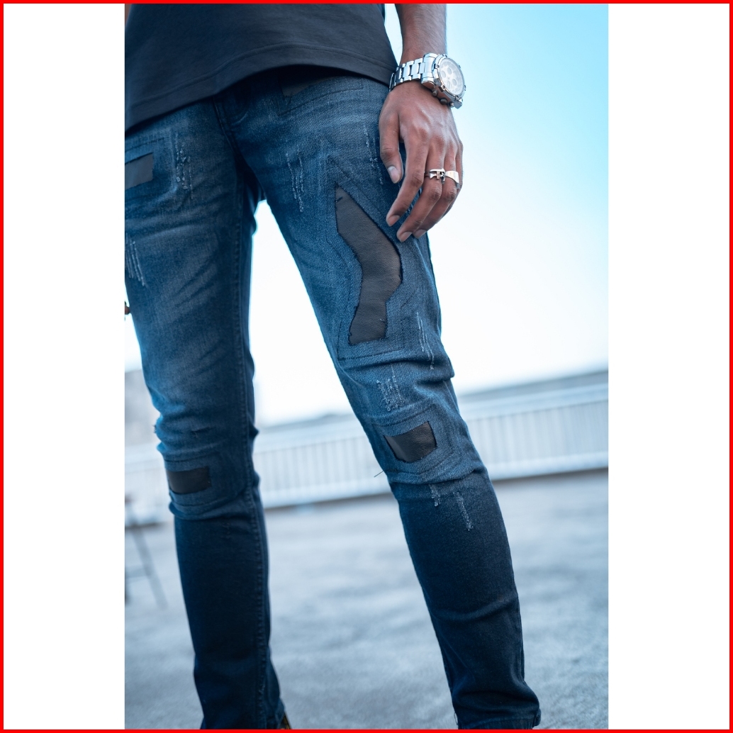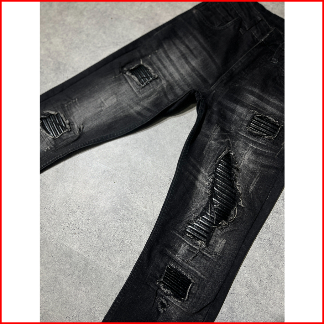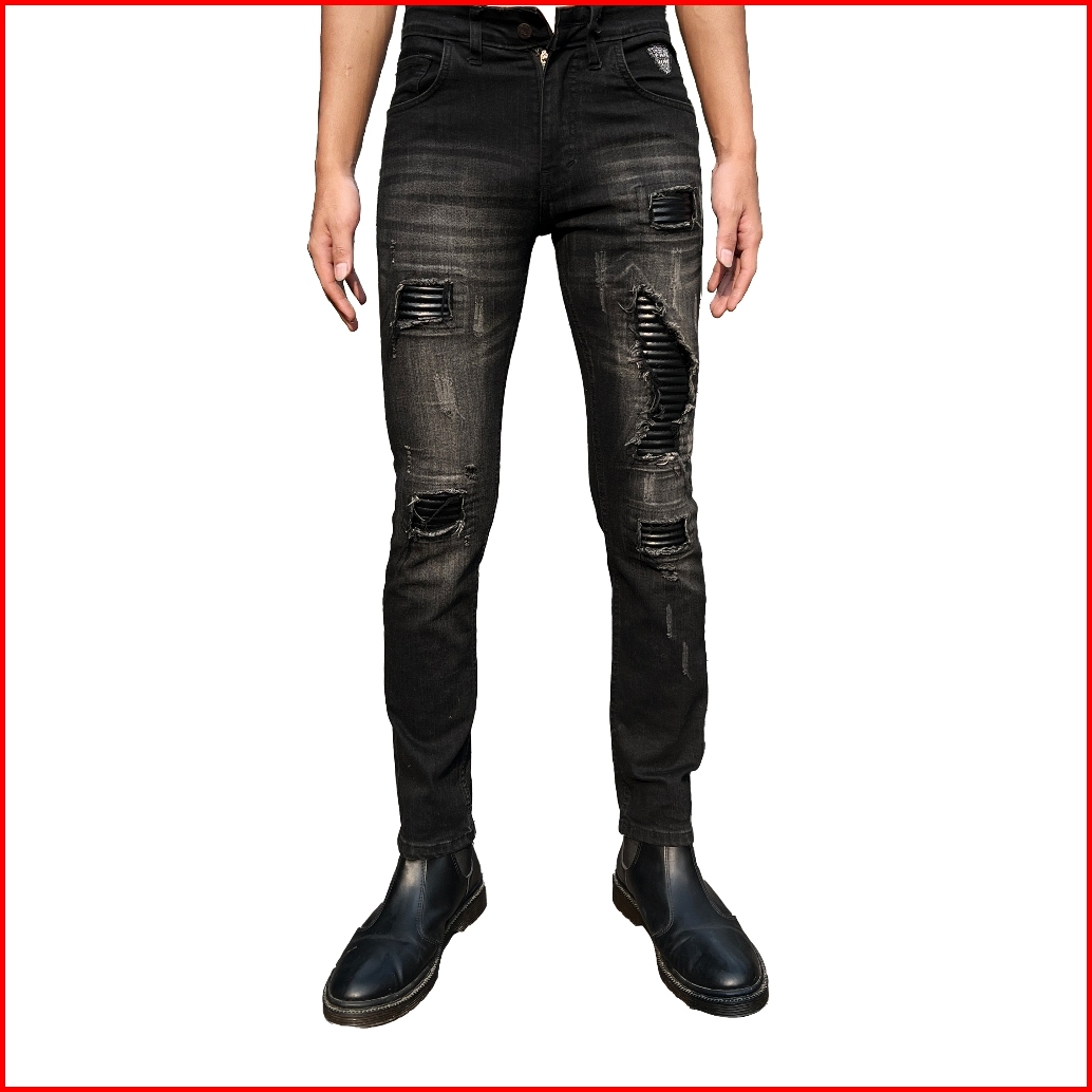 Chickcool Black Skin Street Bikers Edition Celana Jeans Pria Skinny Strech Ripped Tambal Leather Denim Fit
