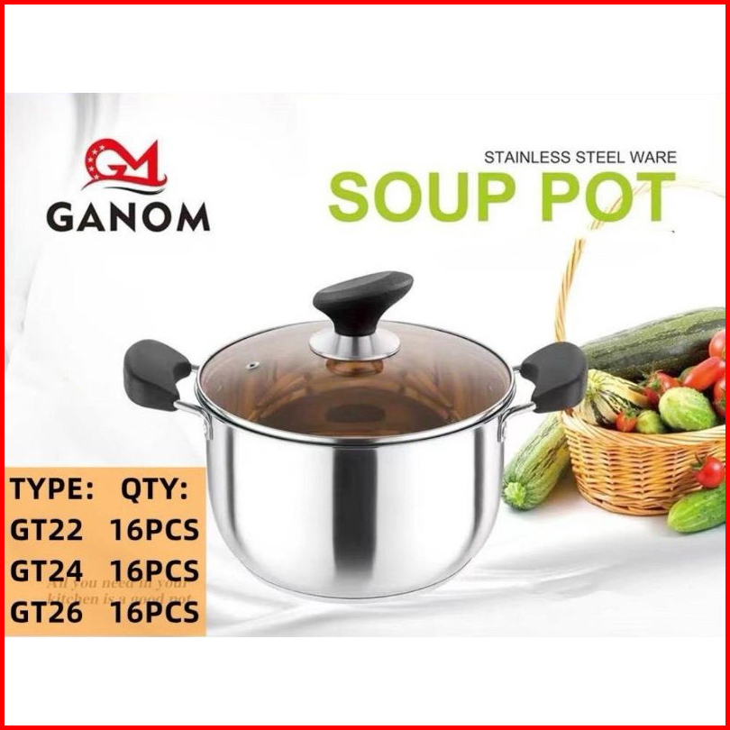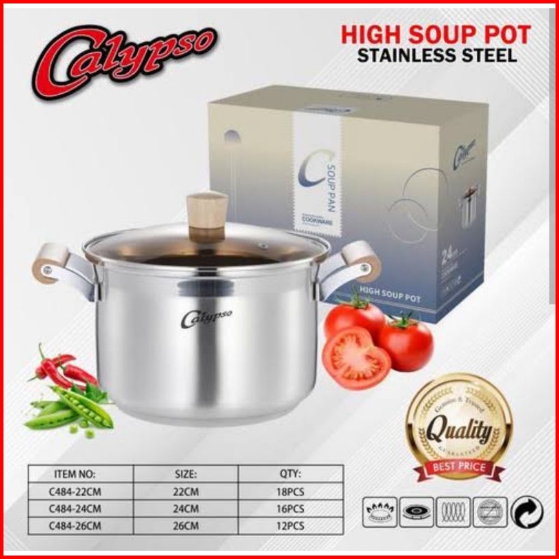 Panci Sup Soup Tebal Tutup Kaca Stainless Calypso 26cm Panci High Soup Pot Calypso Tutup Kaca 22cm 24cm 26cm Panci Stock