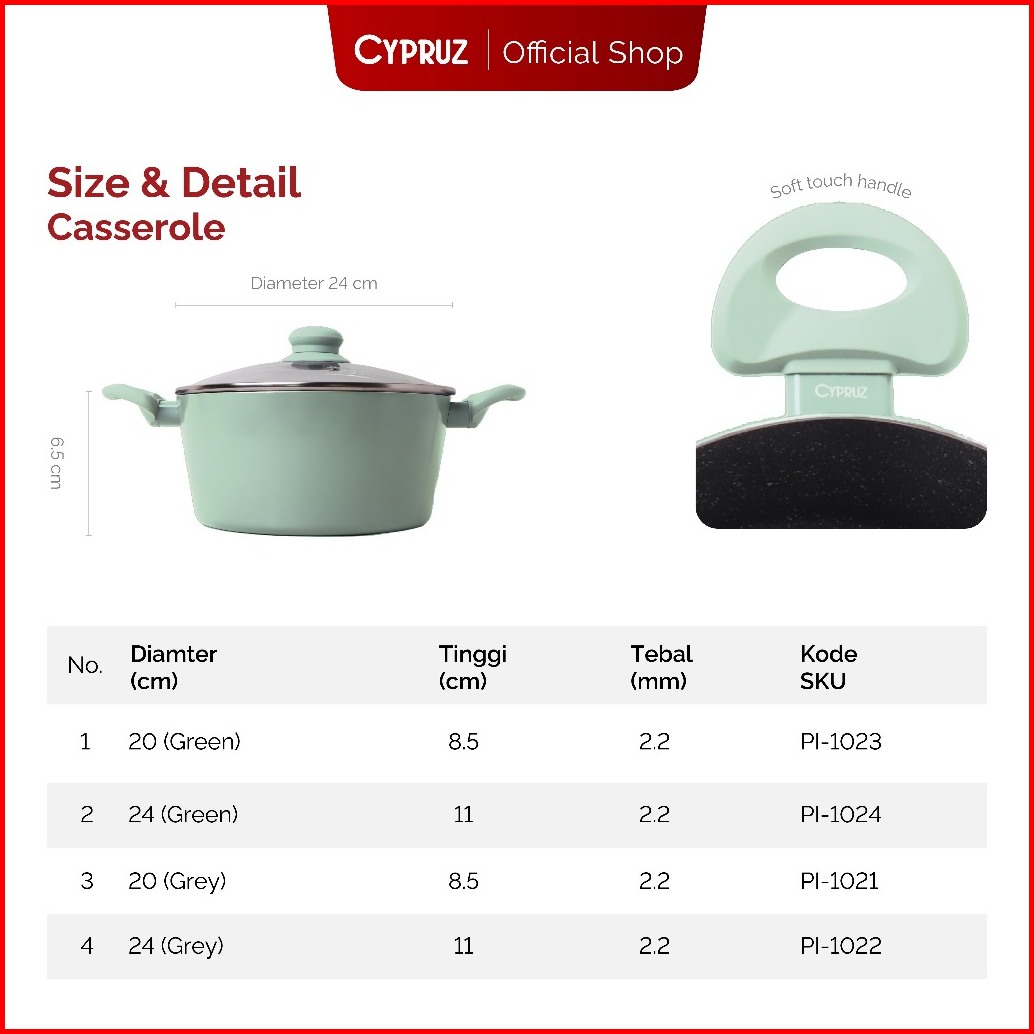 Cypruz Casserole Pan Stock Pot Panci Anti Lengket Dengan Tutup Featherlight Series