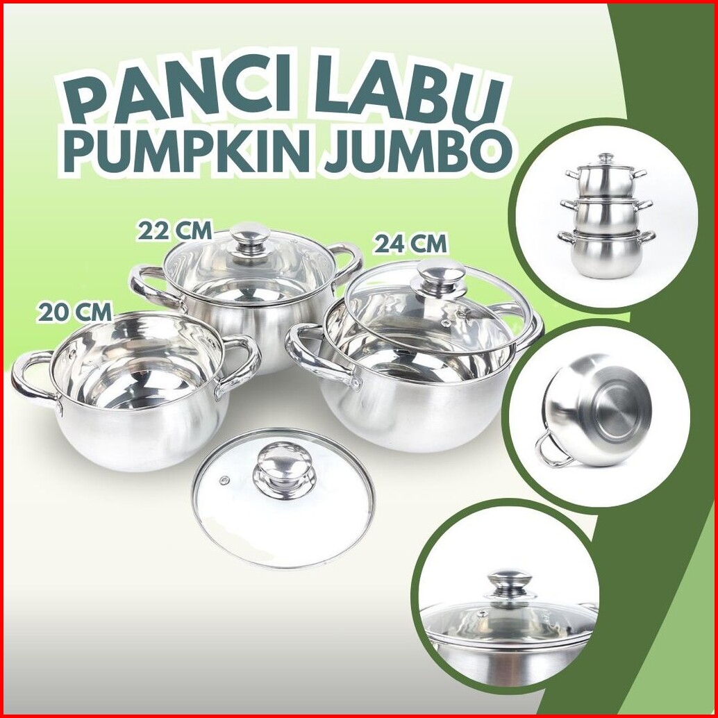 Okela - Panci Labu Jumbo 1 Set 3 Pcs Panci Sop Panci Rebus Panci Tutup Kaca Panci Stainless Steel Ukuran 16 18 20 Cm Per