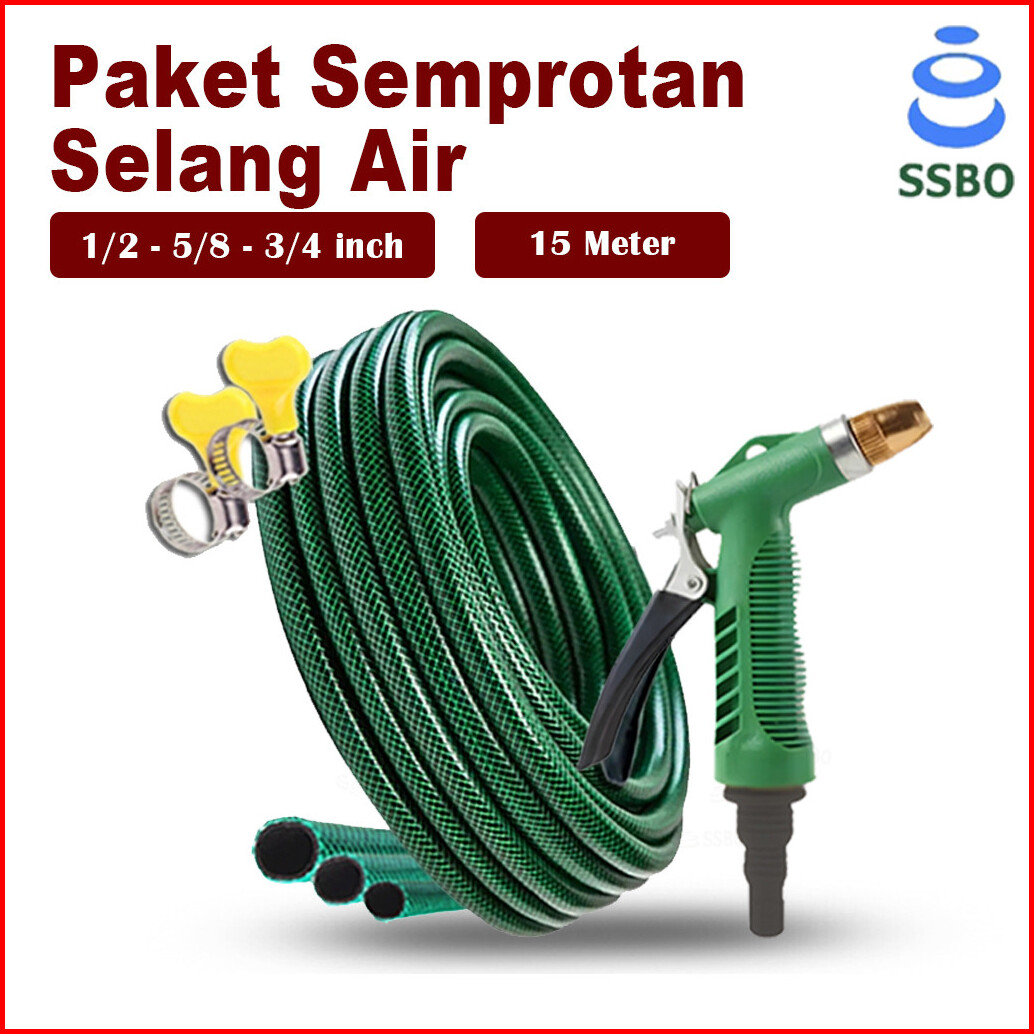 Ssbo Sepaket Semprotan Selang Air Hijau Selang Air 15 Meter 1 Rol Selang Air 1 2 5 8 3 4 Inch Selang Air Tebal