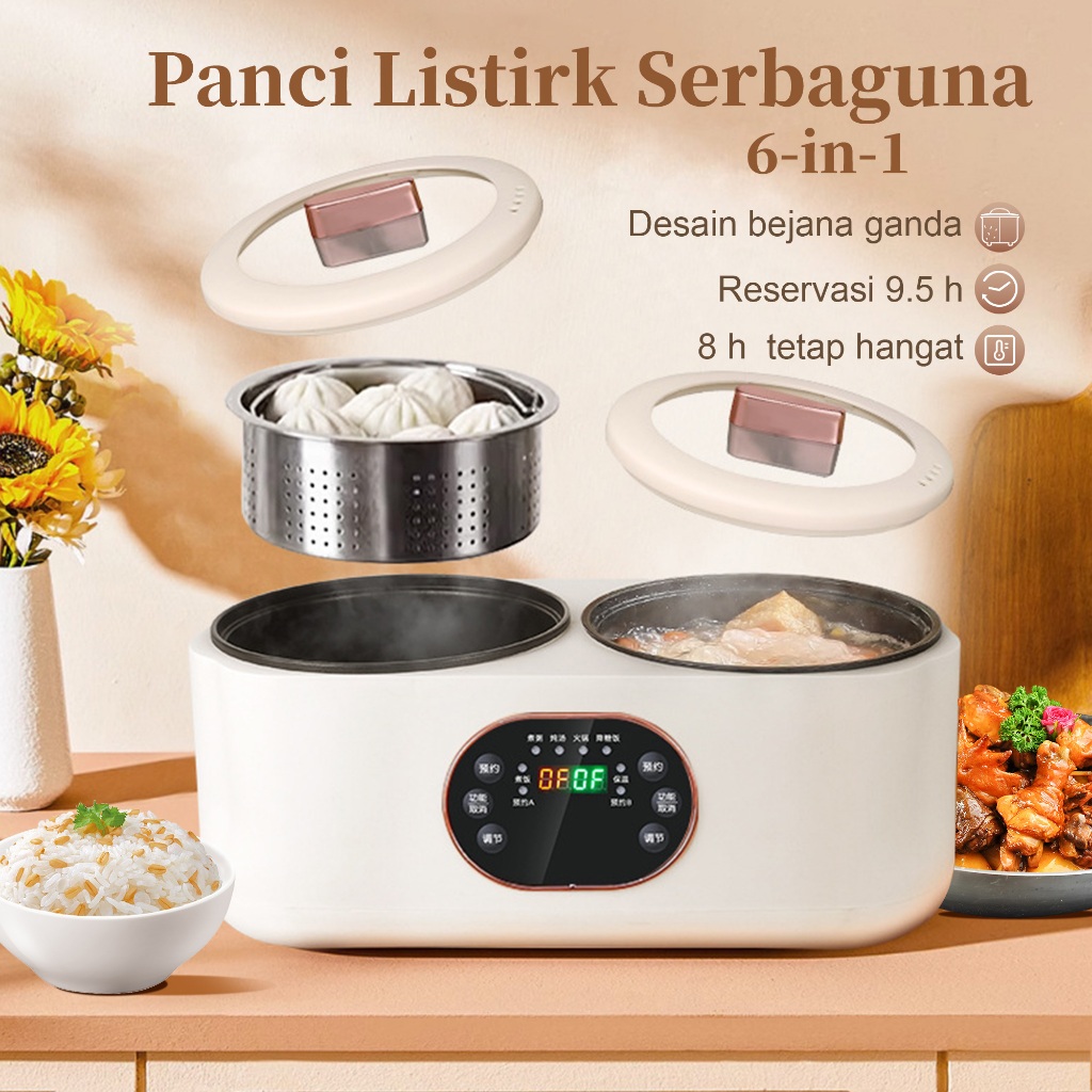 PANCI LISTRIK MULTIFUNGSI DOUBLE POT ELECTRIC HOTPOT 6-IN-1 / PANCI LISTRIK MINI SERBAGUNA ANTI LENGKET TERMURAH LARIS