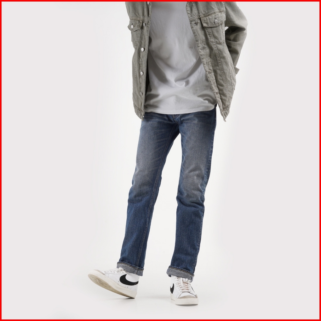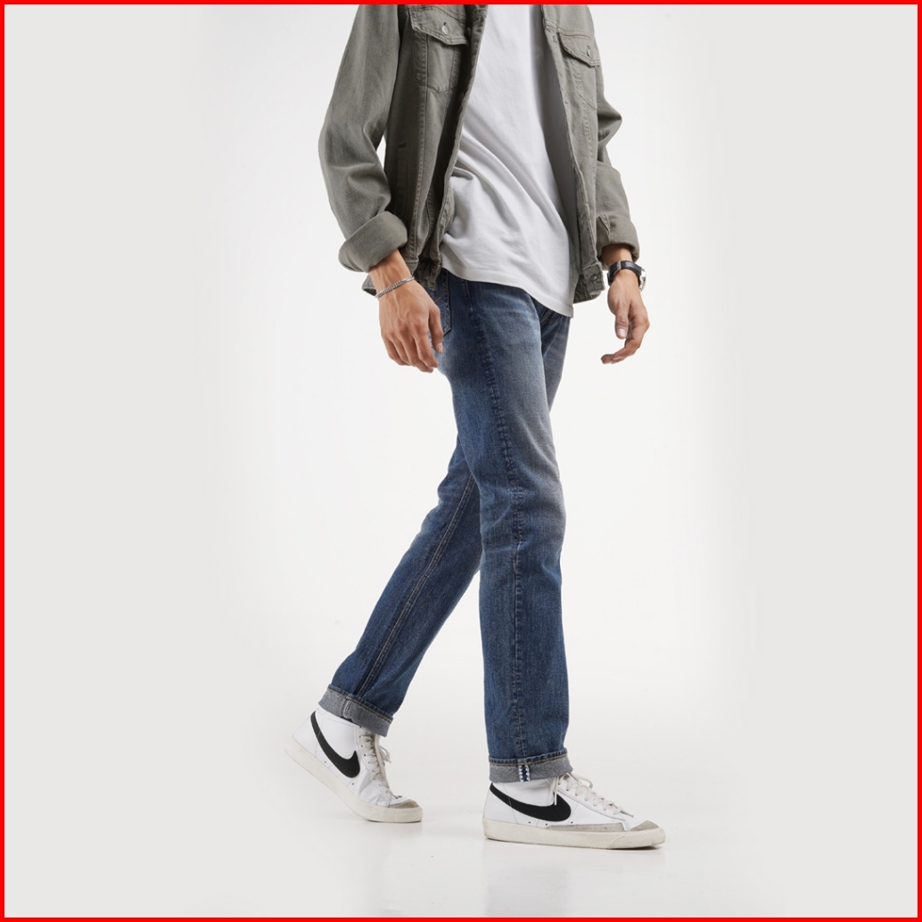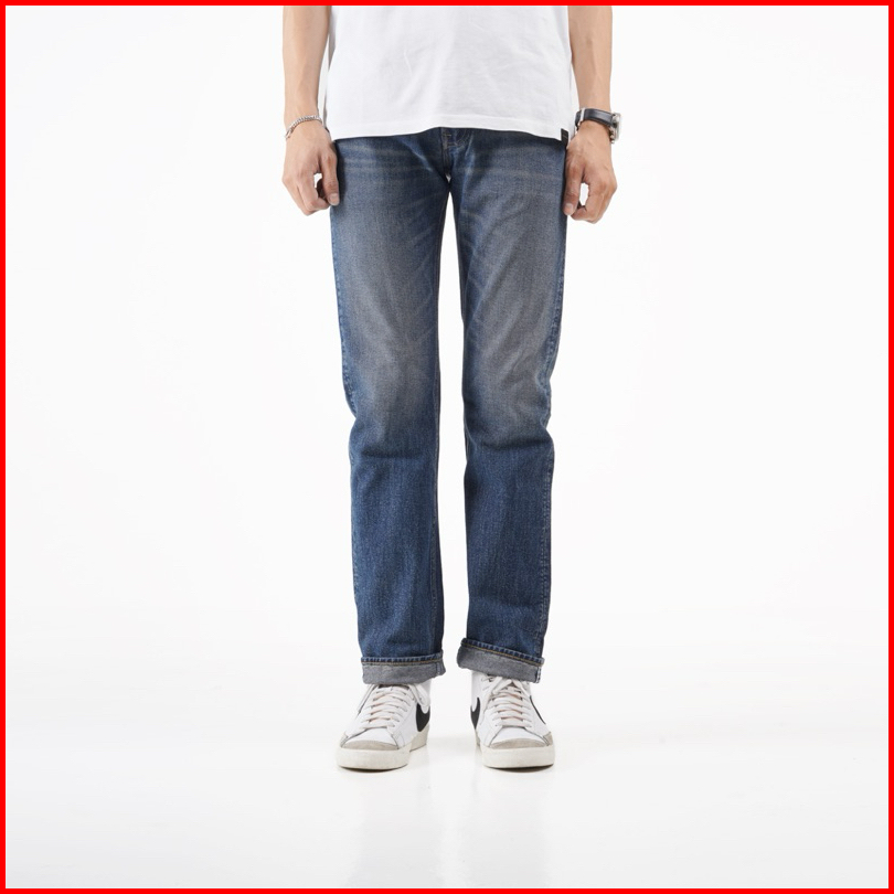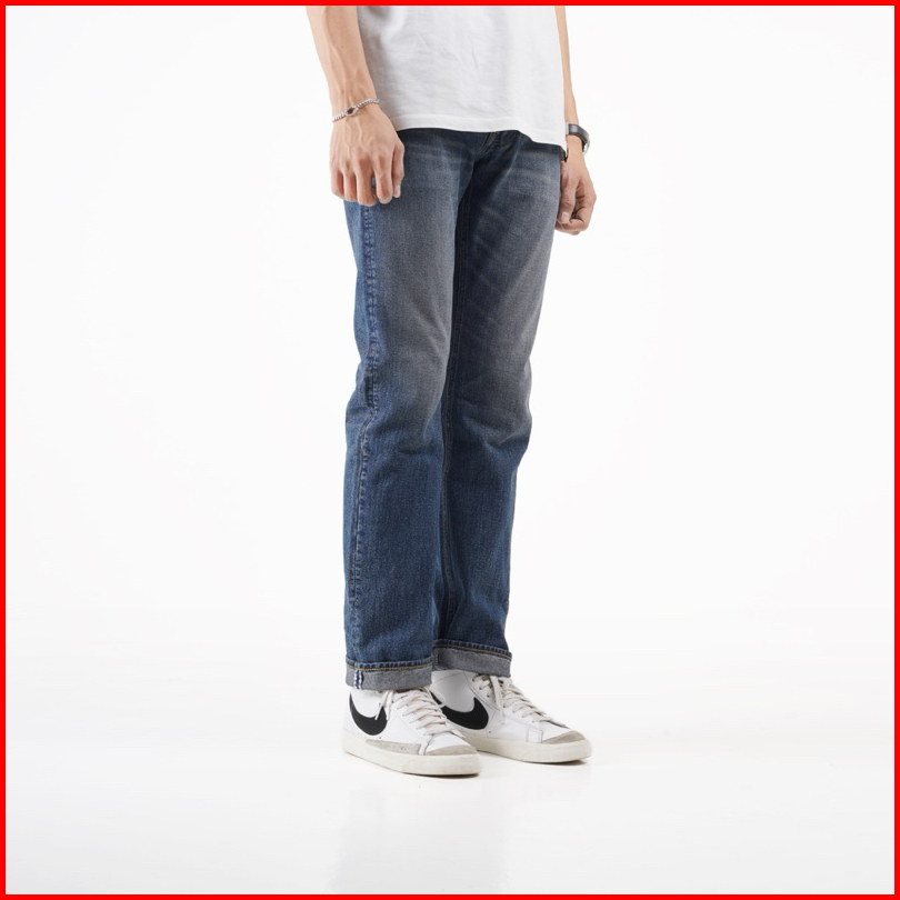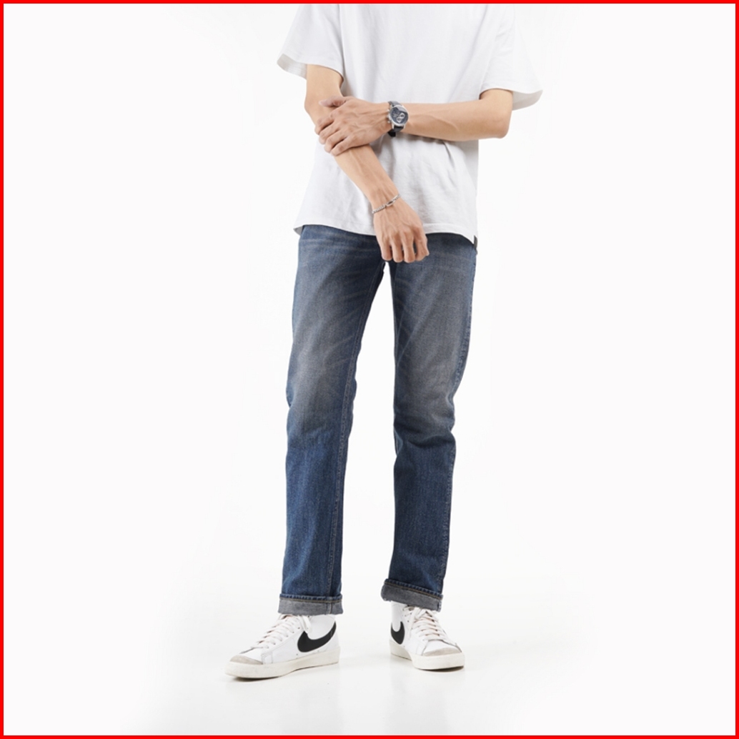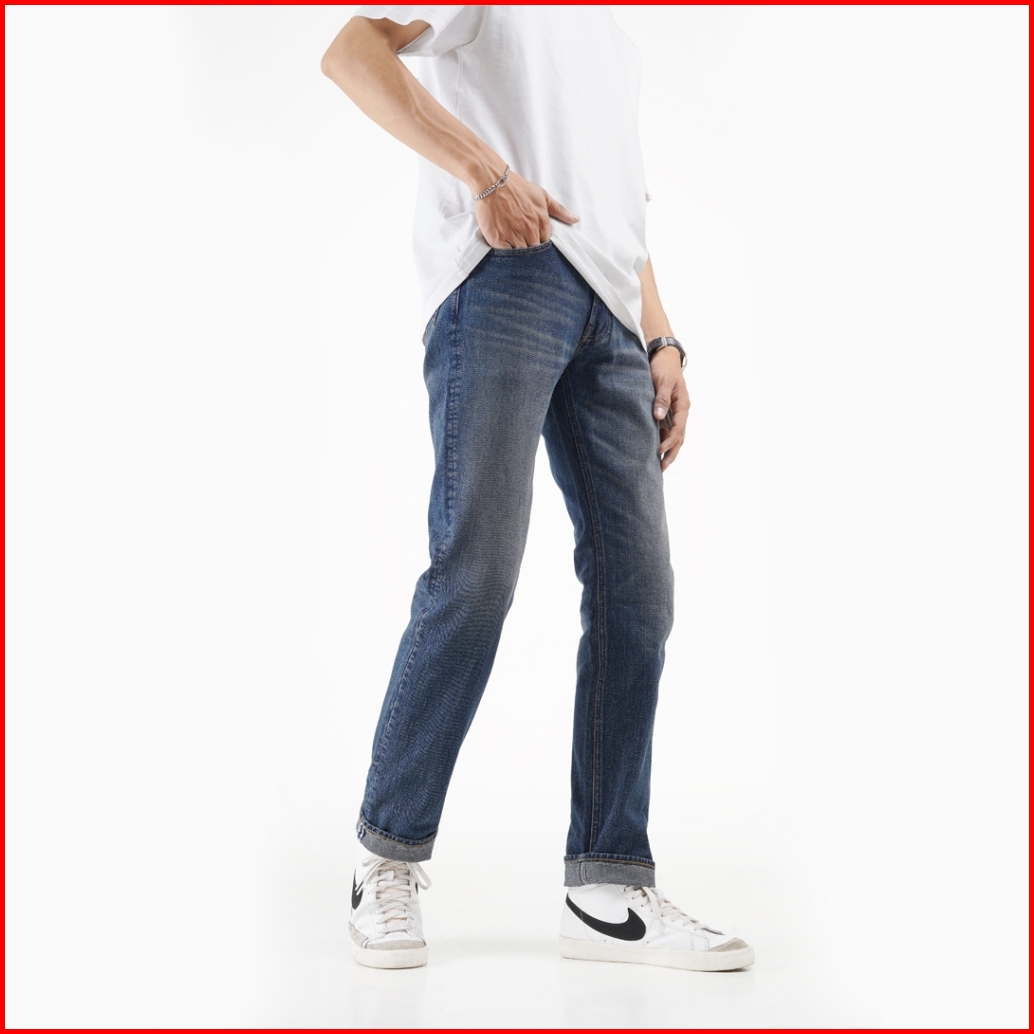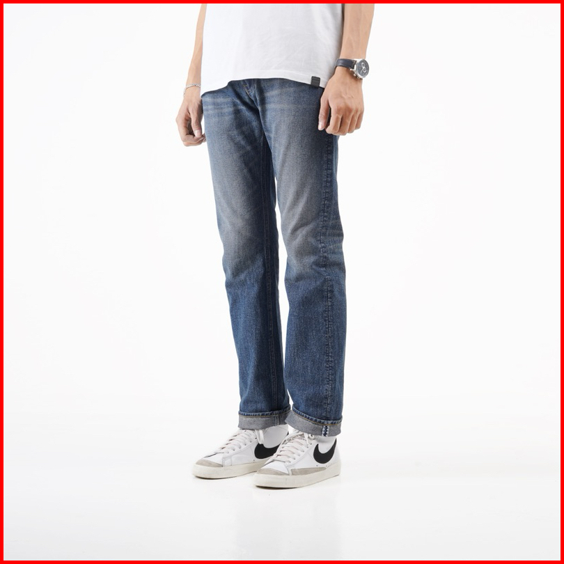 Volkvog Jeans Santiago Celana Panjang Washed Denim Pria Slim Straight Biru