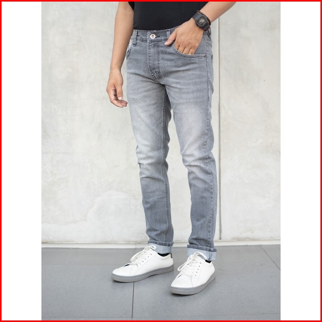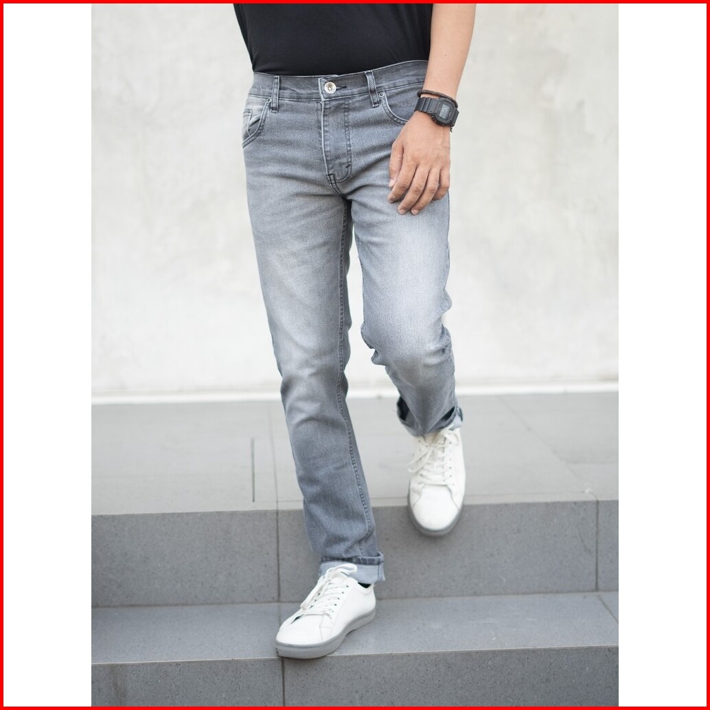 Hey Man Celana Jeans Denim Panjang Pria Slimfit Strech - Grey Stonewash