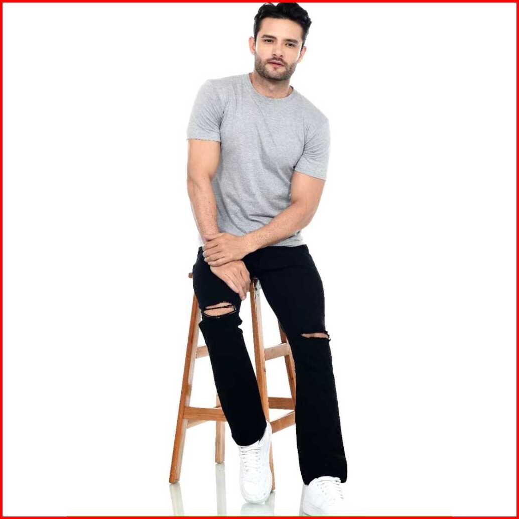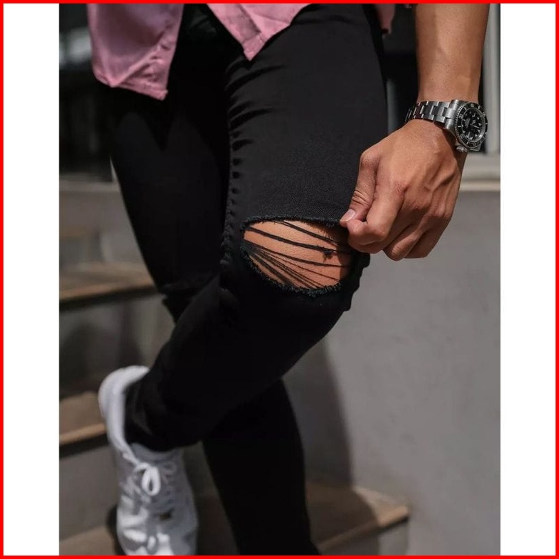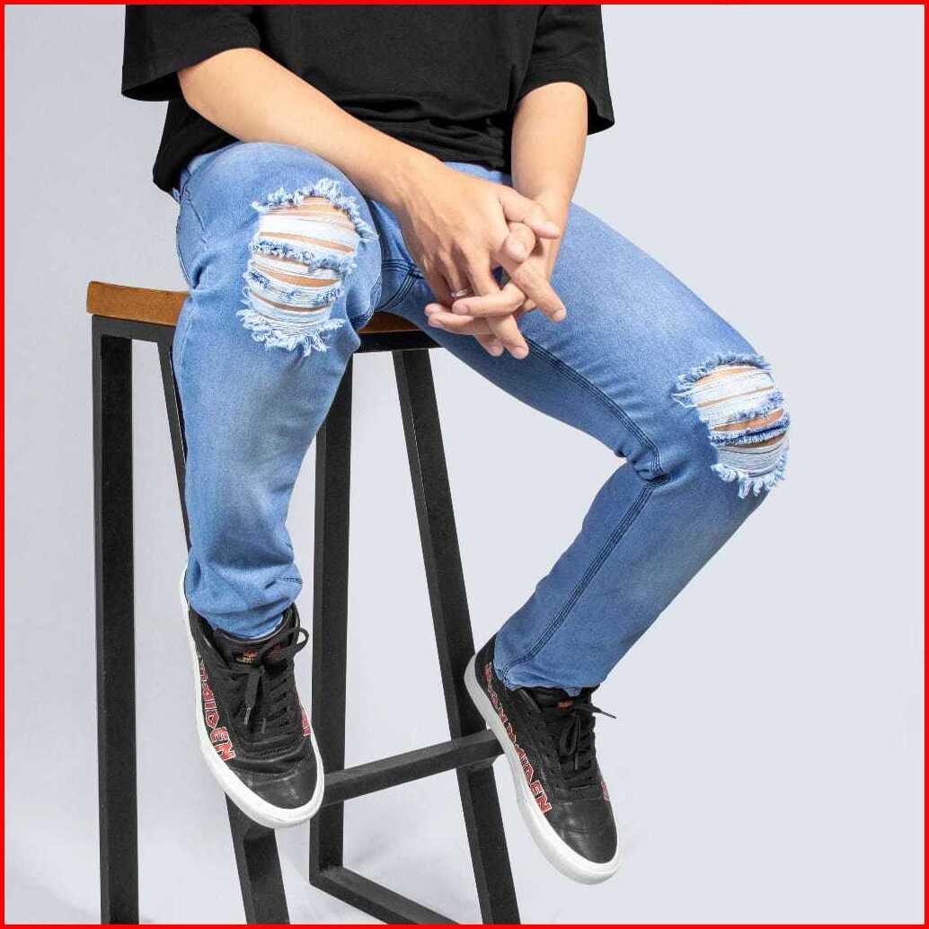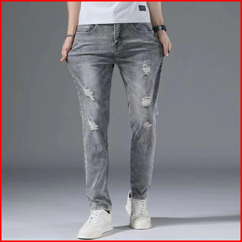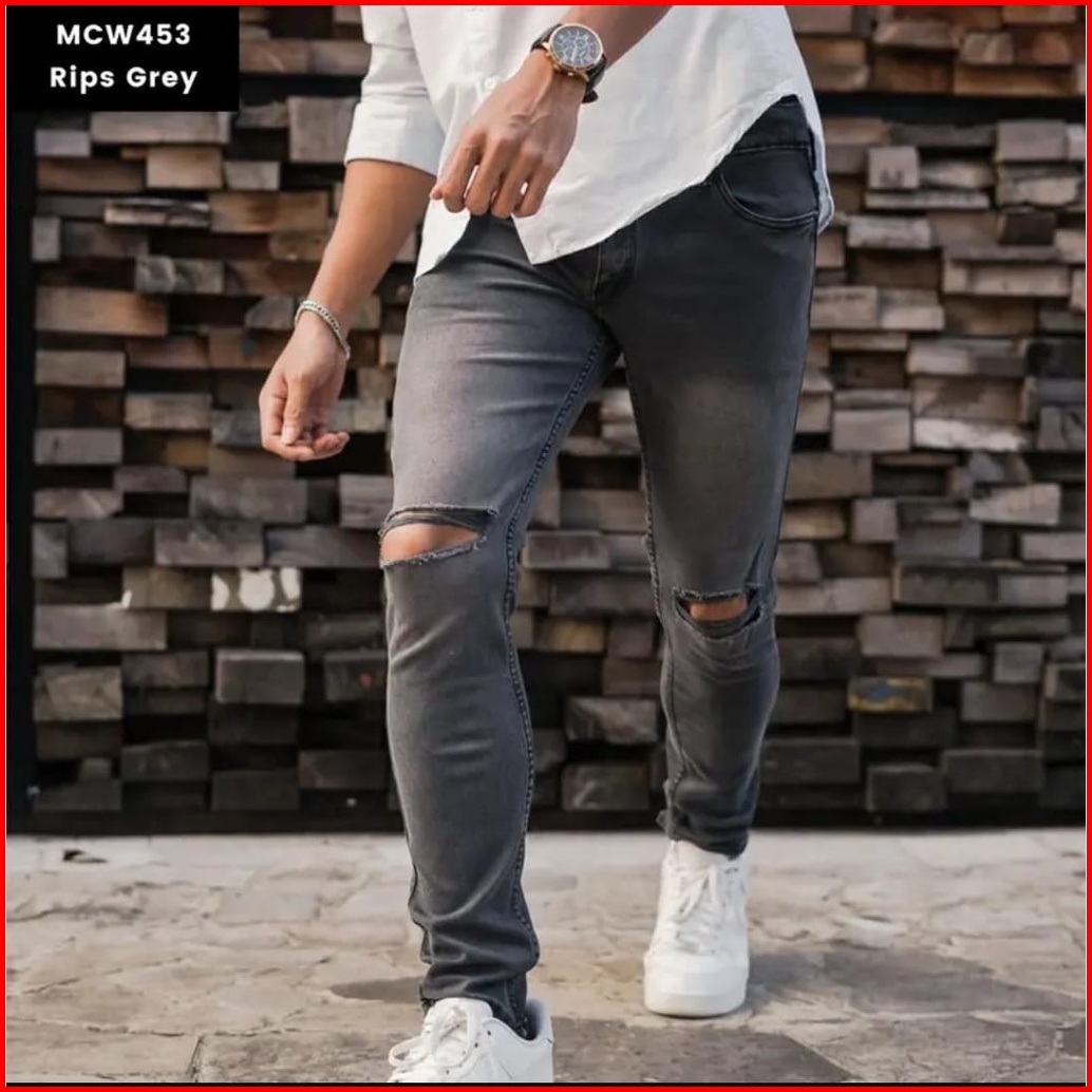 Minostyle - Celana Jeans Pria Sobek Abu Grey Slimfit Stretch Panjang Cowok Ripped Celana Denim Dewasa Robek Skinny Pensi