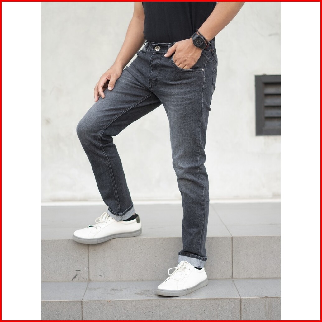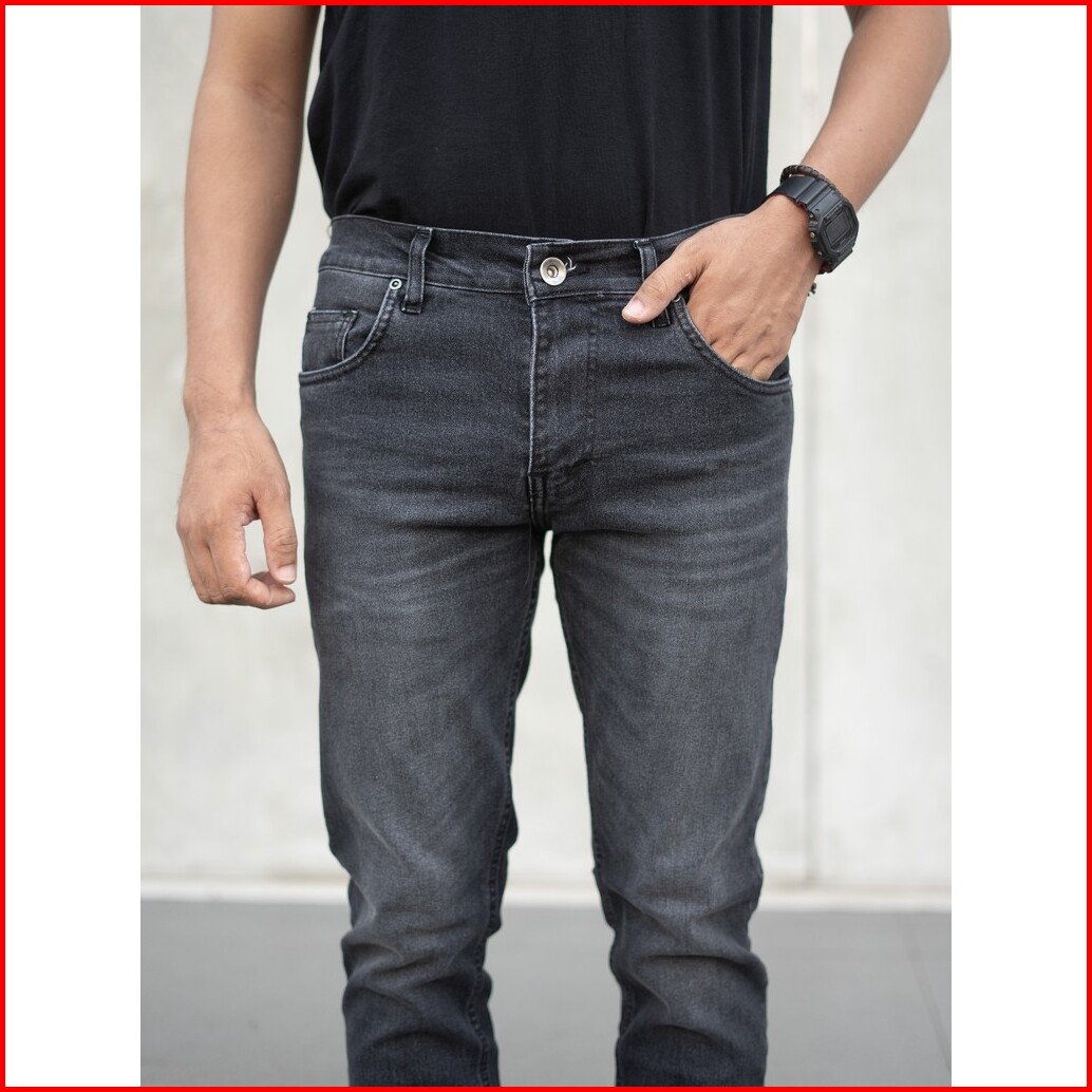 Hey Man Celana Jeans Denim Panjang Pria Slimfit Strech - Black Stonewash