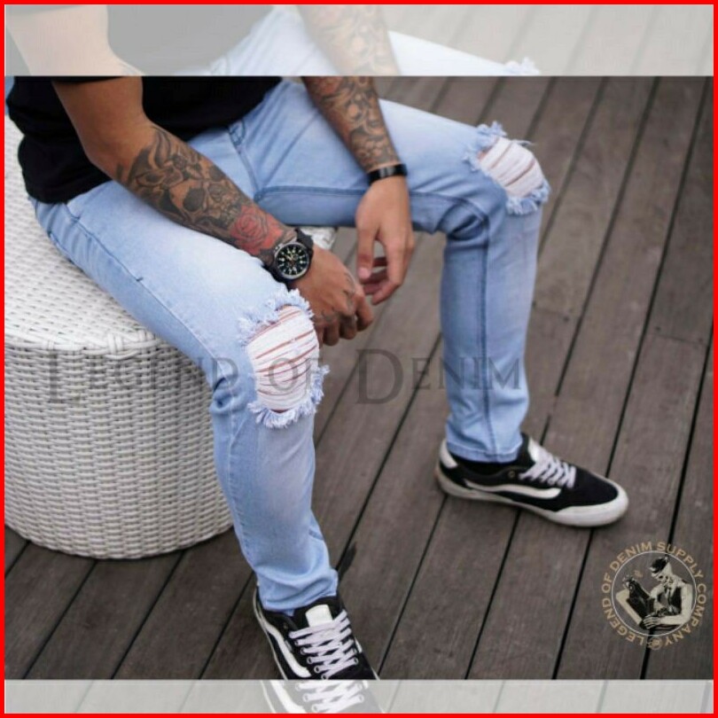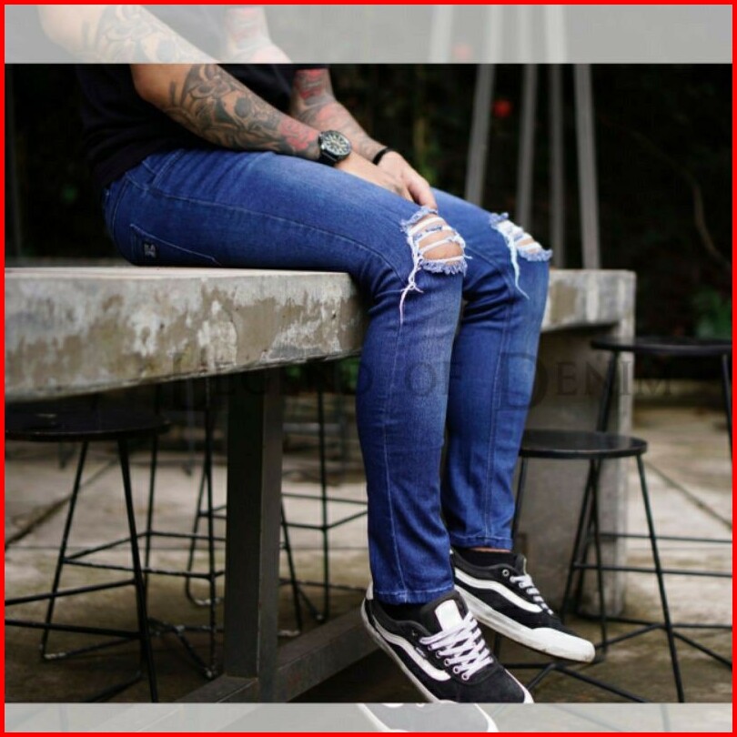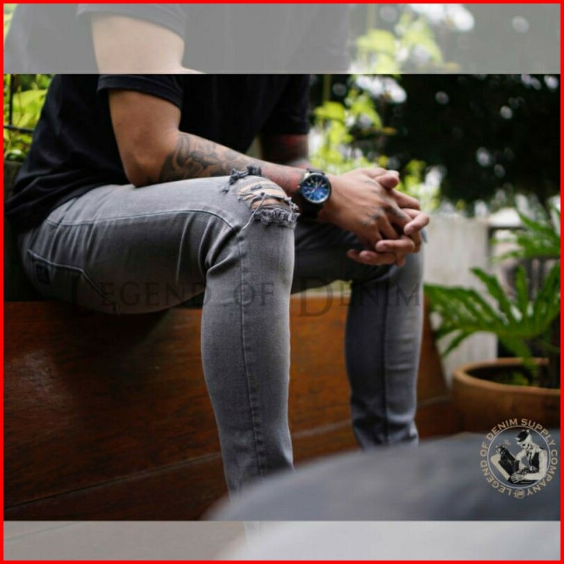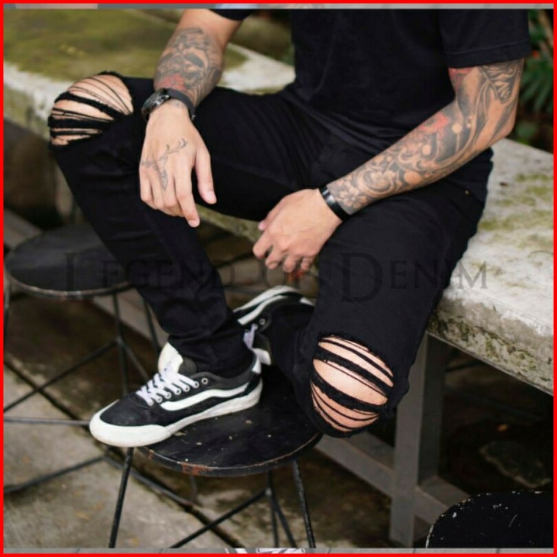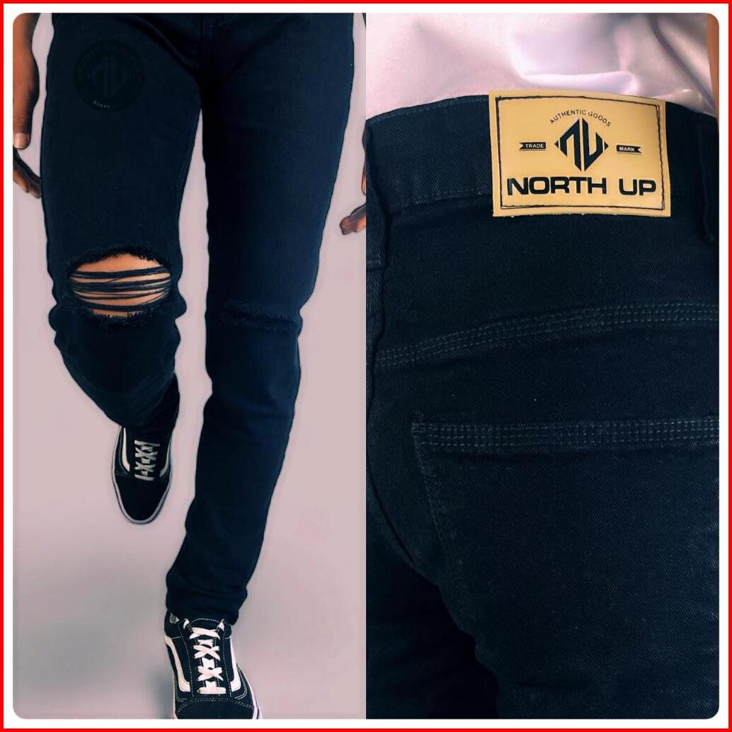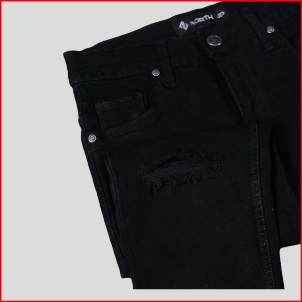 Northup Celana Jeans Pria Panjang Semi Softjeans Slimfit Hitam Sobek Lutut Ripped Jeans Street Melar