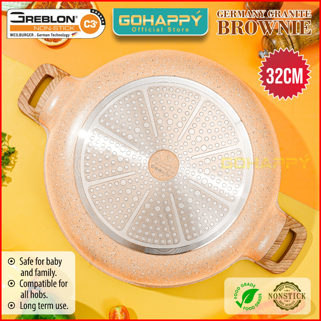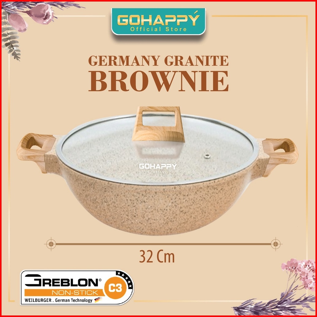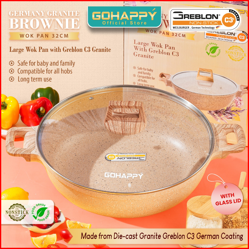 Mayba - Panci Wajan Germany Greblon 32cm Wok Pan Brownie Granite Gohappy Techno Die Cast Anti Lengket