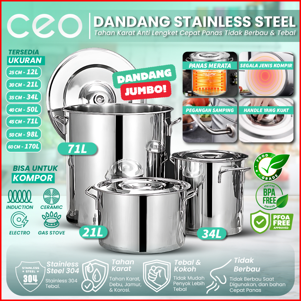 Ceo Panci Dandang Rebus Stainless Steel 304 Tebal Jumbo Stockpot Panci Masak Jualan Bakso Kukus