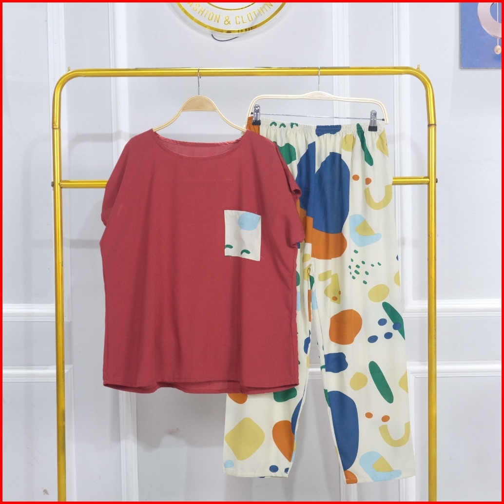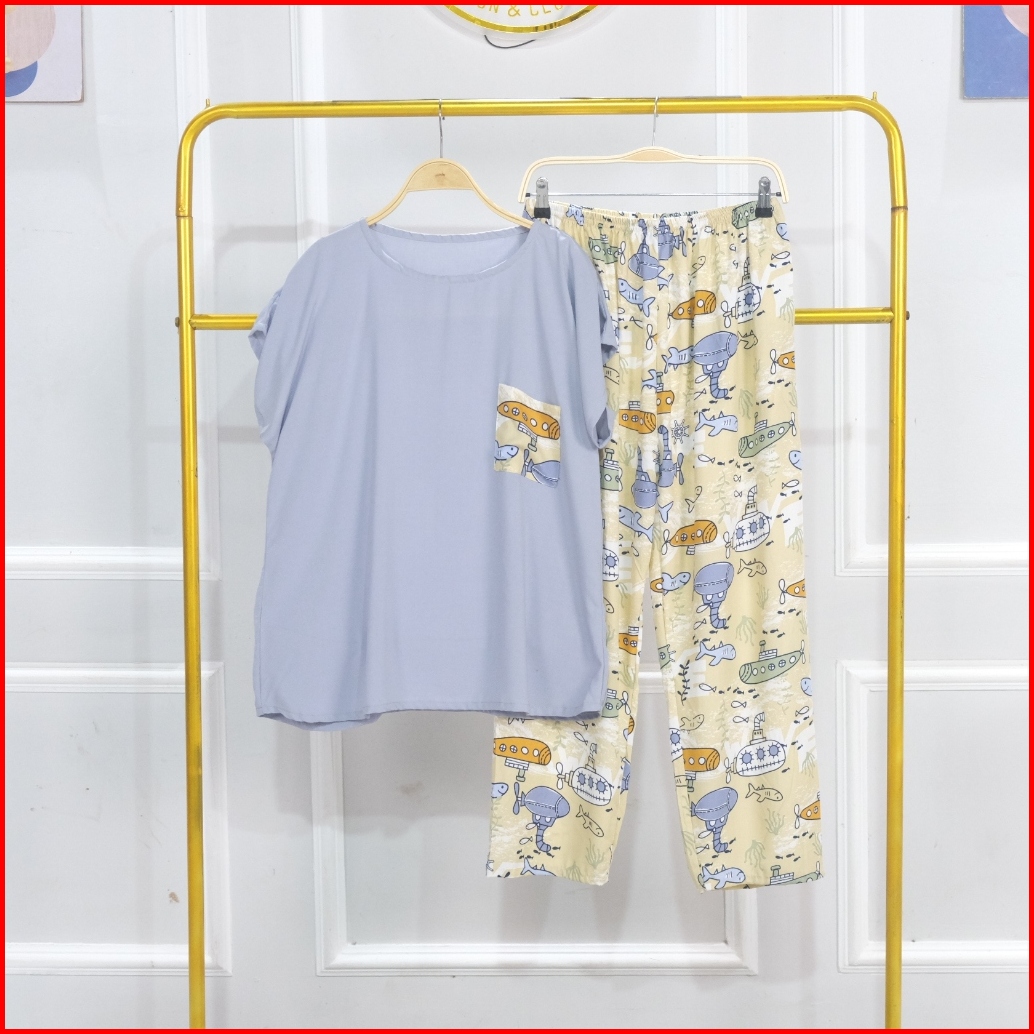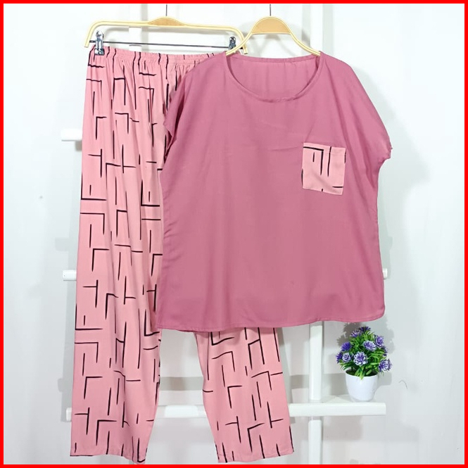 Setelan Baju Tidur Wanita Busui Piyama Wanita Polos Babydoll Dewasa Rayon Jumbo Premium Ld 114-112 Cm