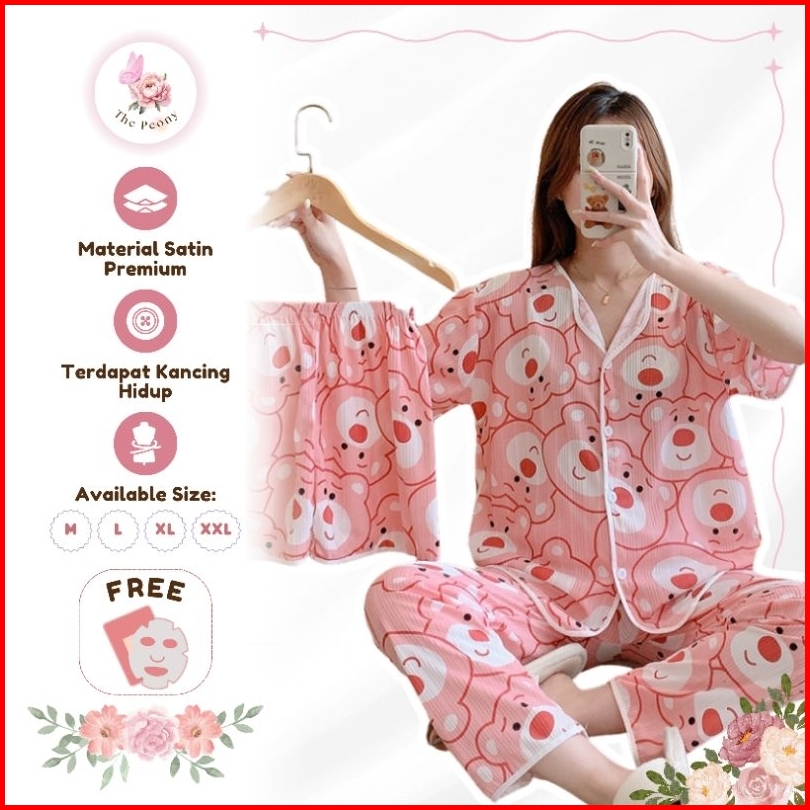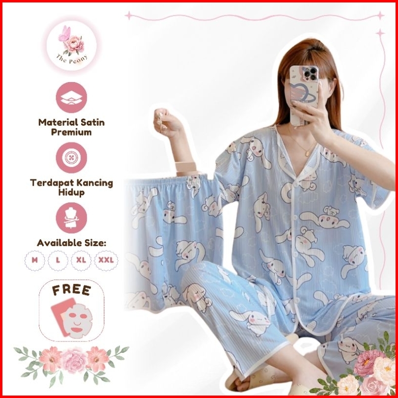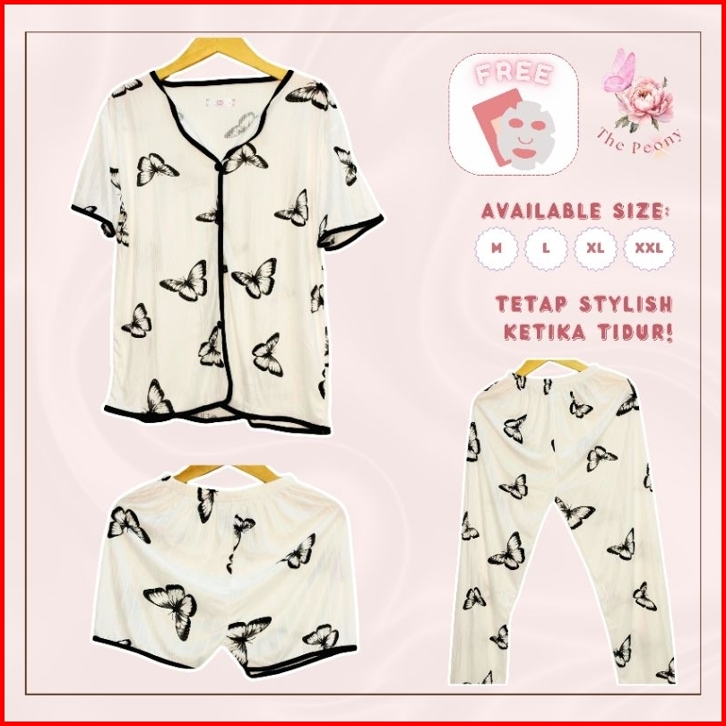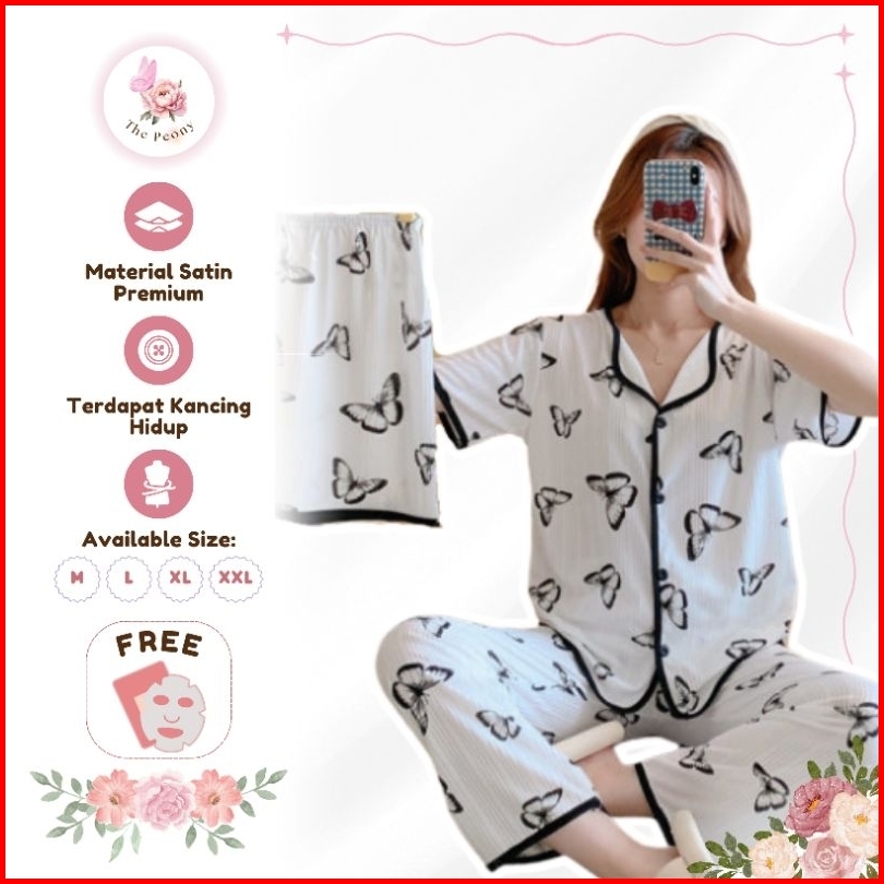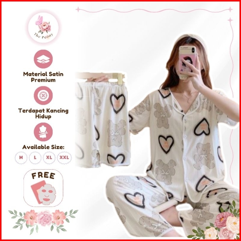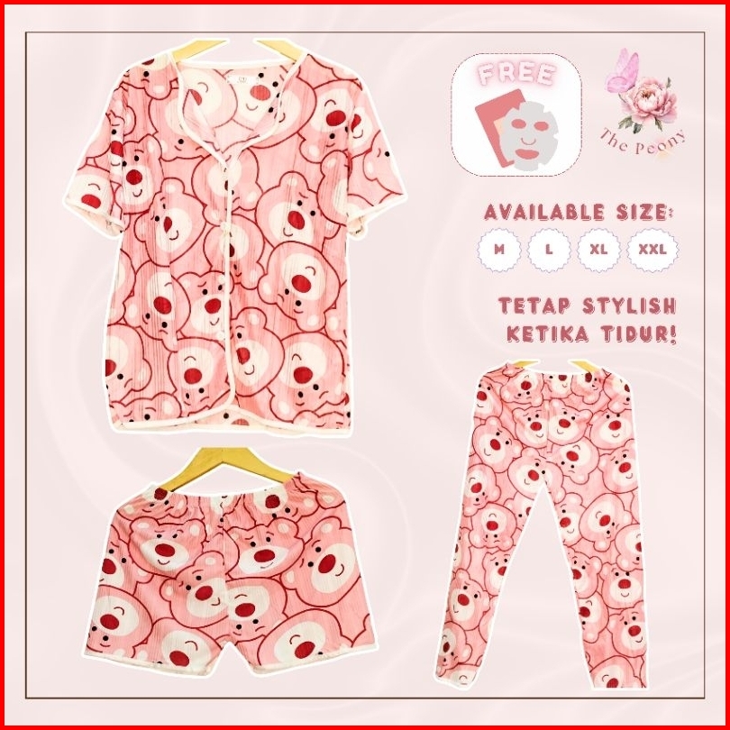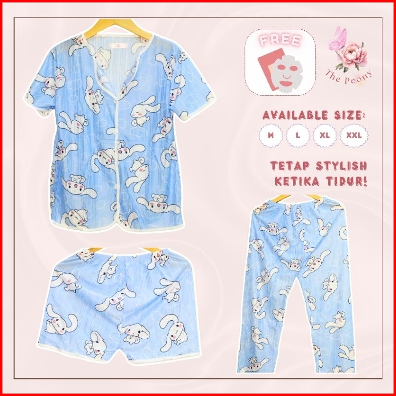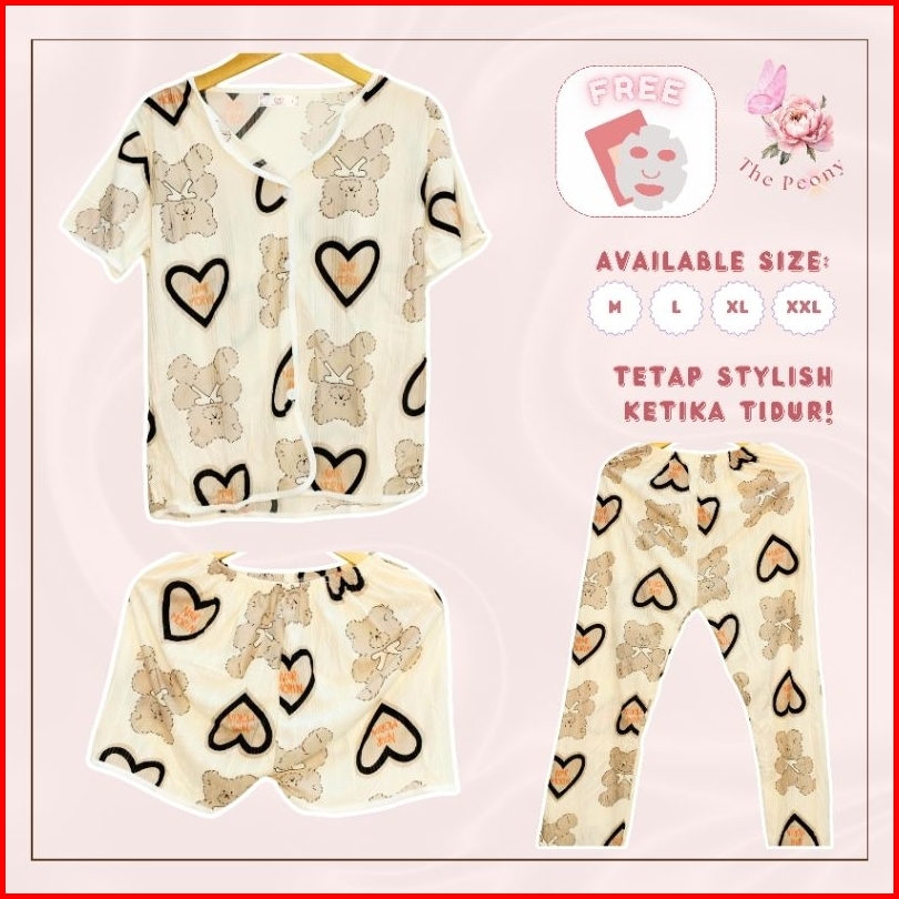 The Peony - 3in1 Piyama Baju Tidur Set Celana Panjang Celana Pendek Lengan Pendek Dewasa Remaja Woman Pajamas