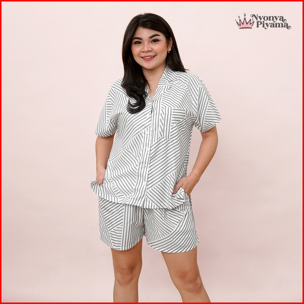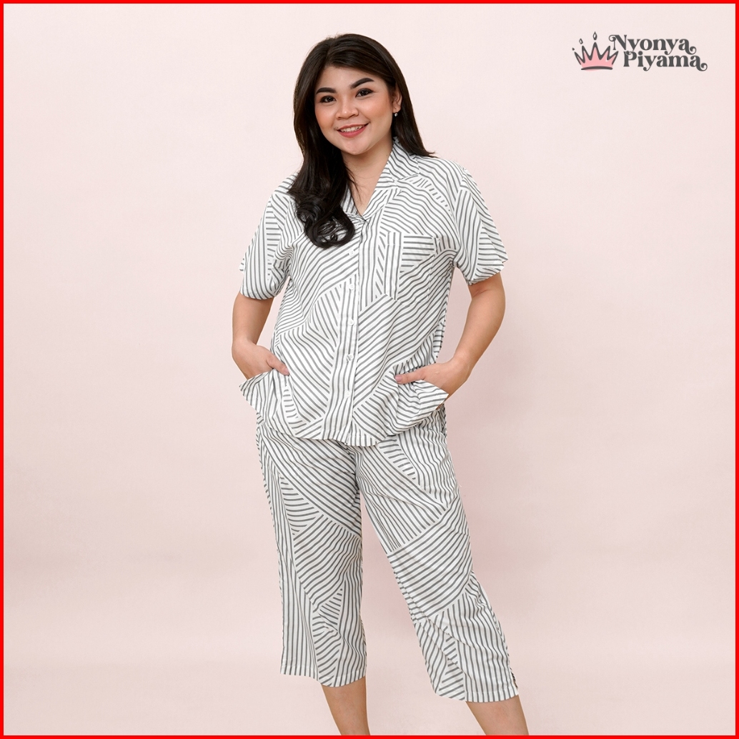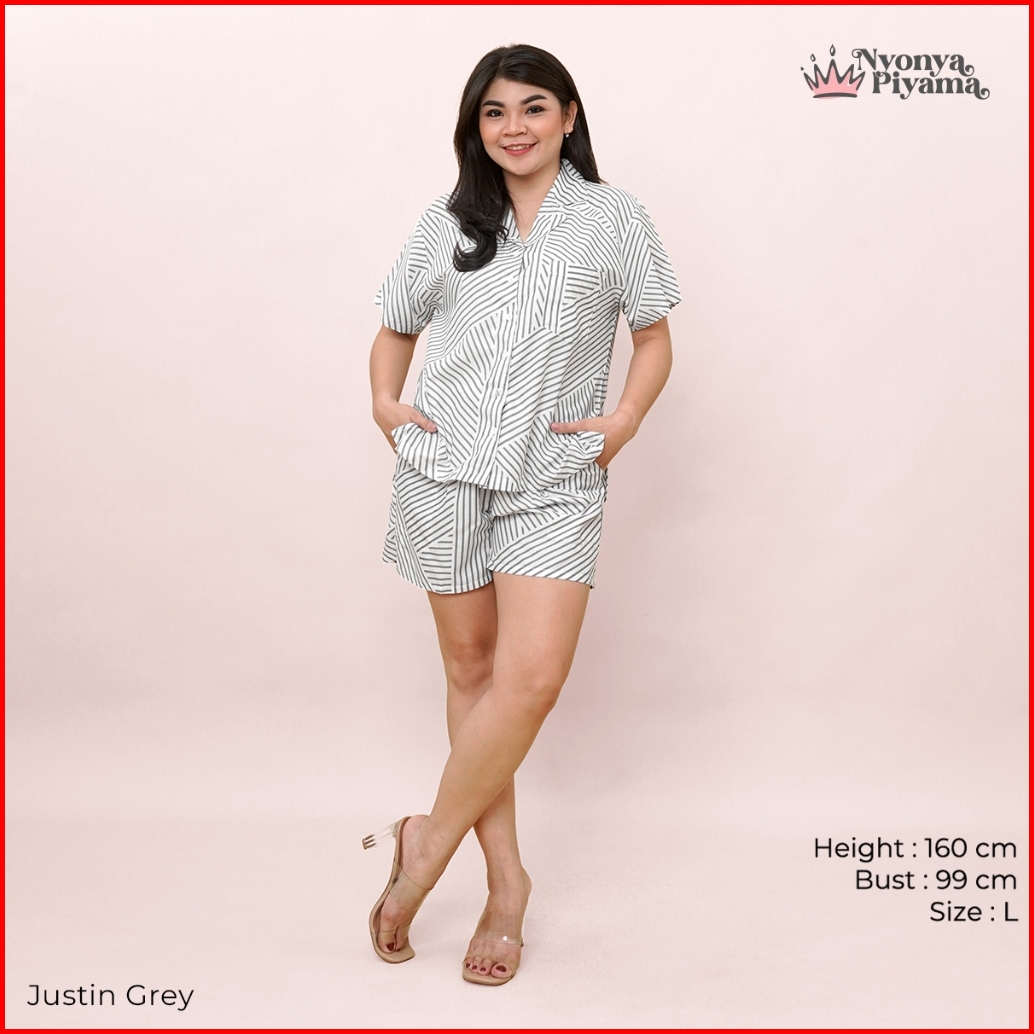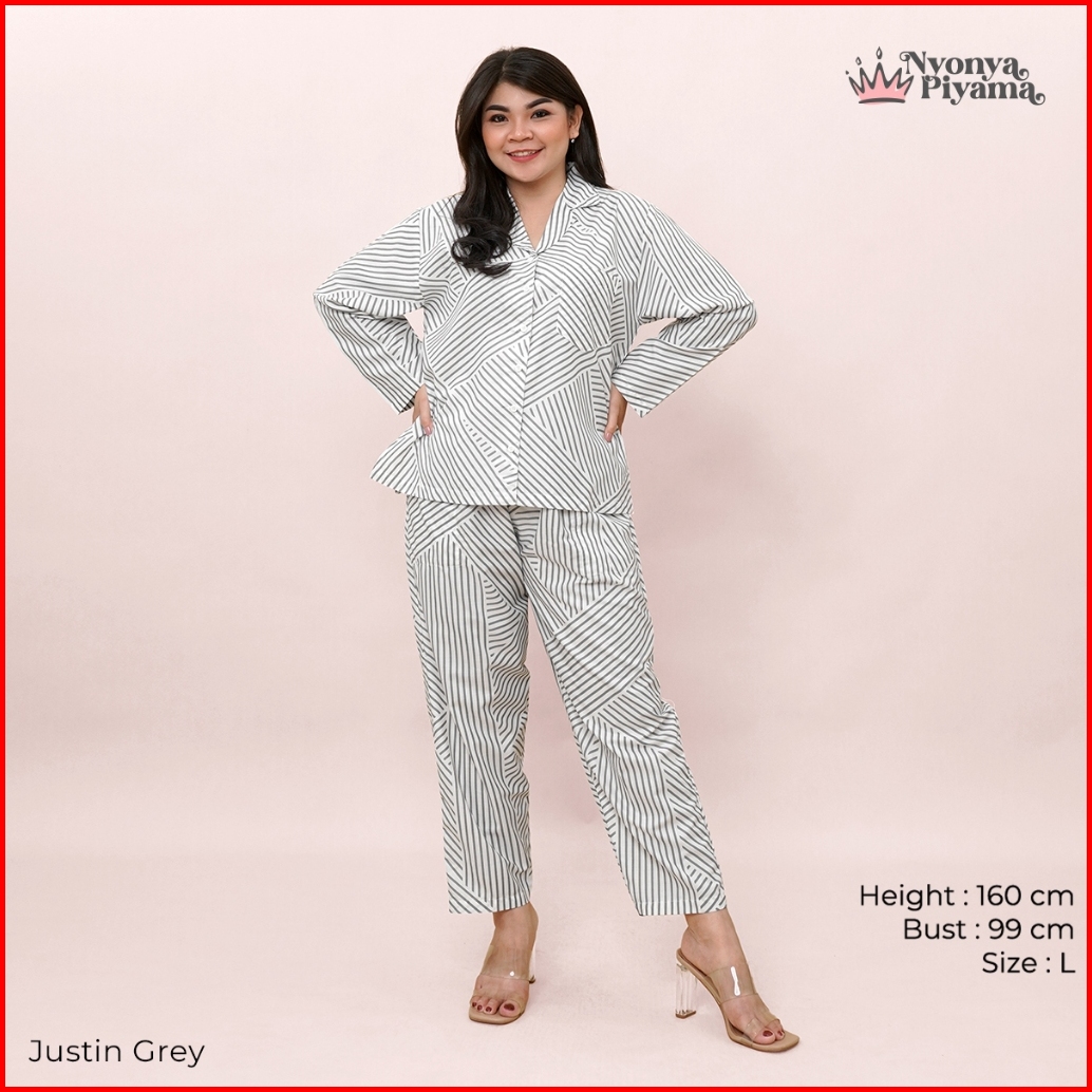 Nyonya Piyama Set Katun Comfy Justin Grey