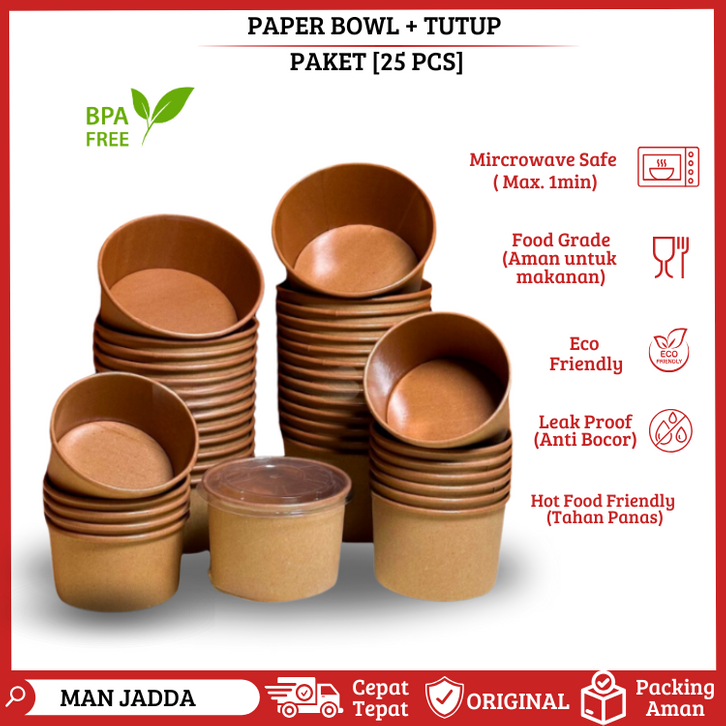 25 PCS PAPER BOWL WADAH TAKJIL MANGKOK KERTAS 1 PACK 360ML 500ML 650ML 800ML KRAFT COKLAT PUTIH LAMINASI MURAH TERLARIS
