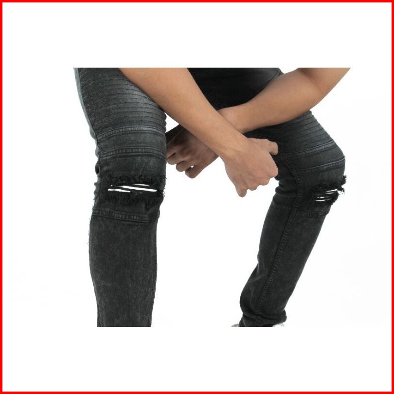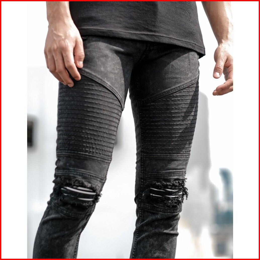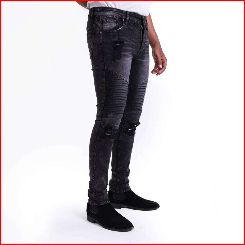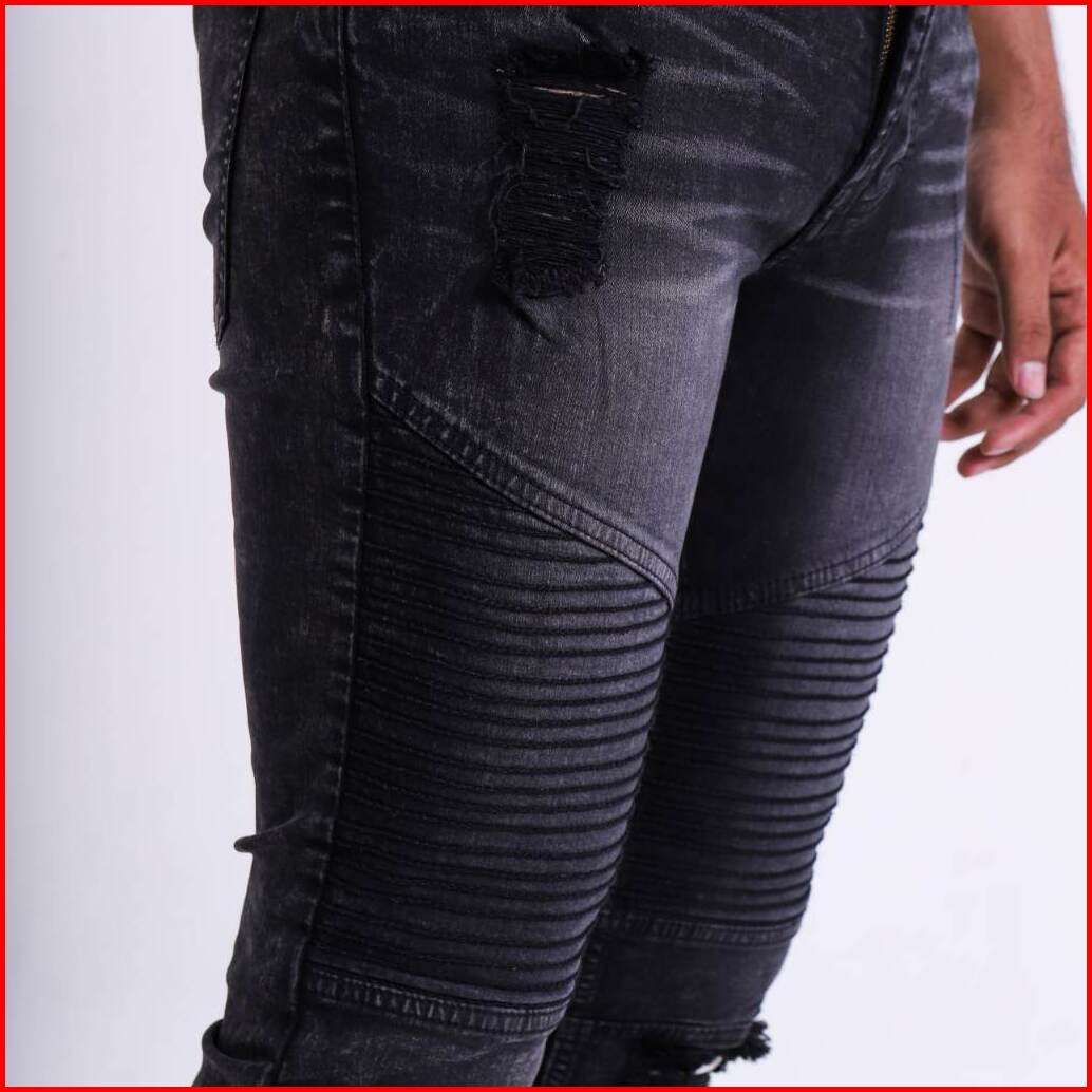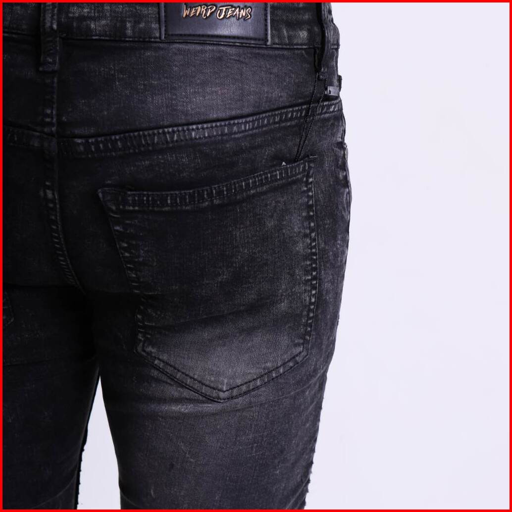 Weird Jeans - Biker Jeans Charcoal Black - Celana Jeans Panjang Pria Slimfit Ripped Jeans Stretch