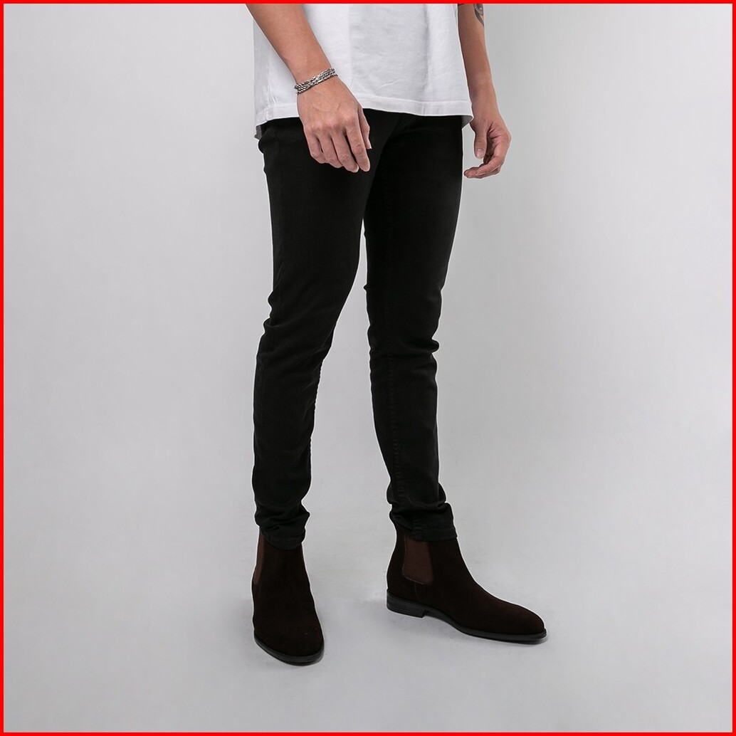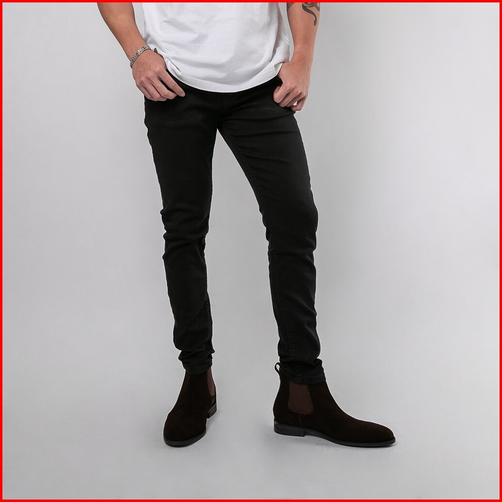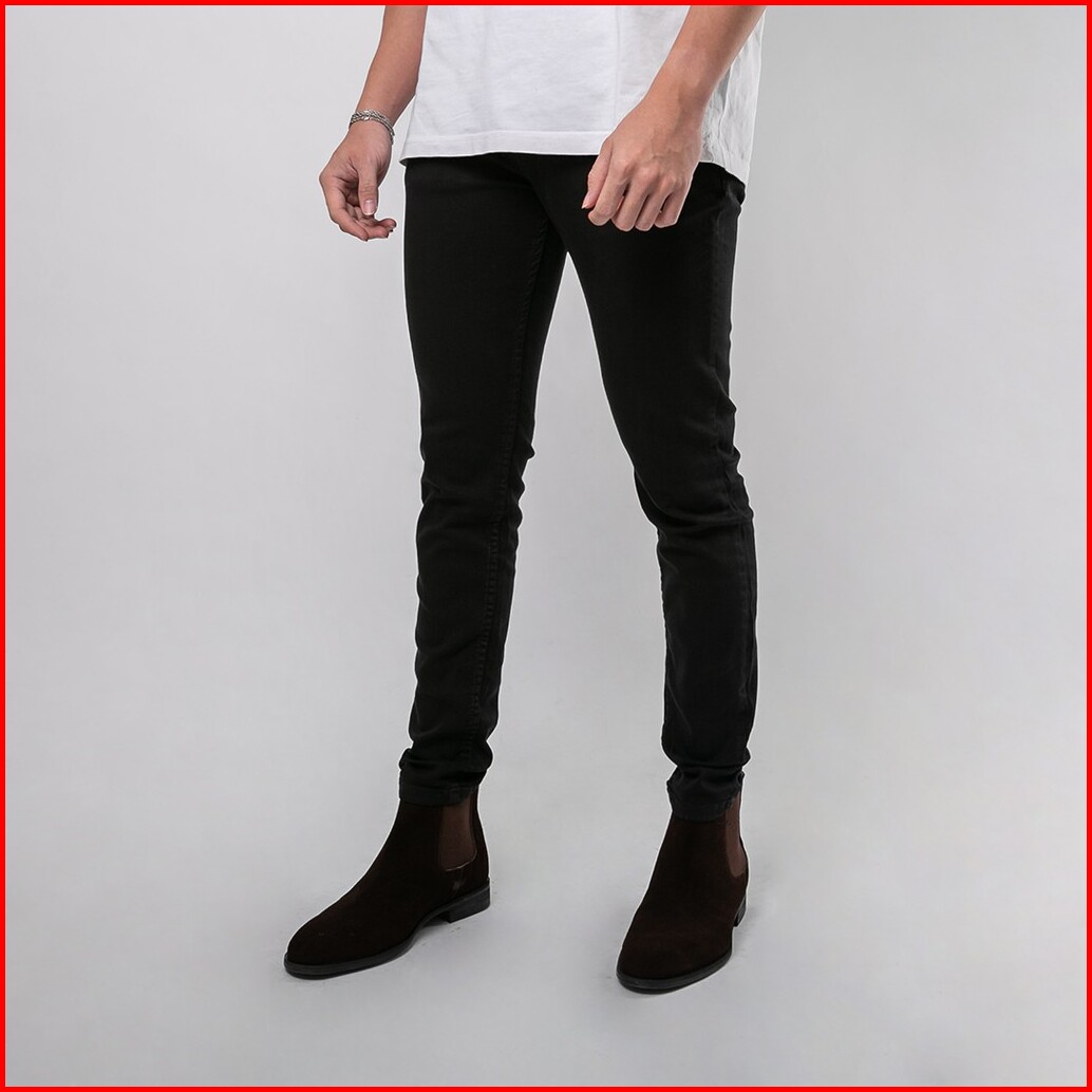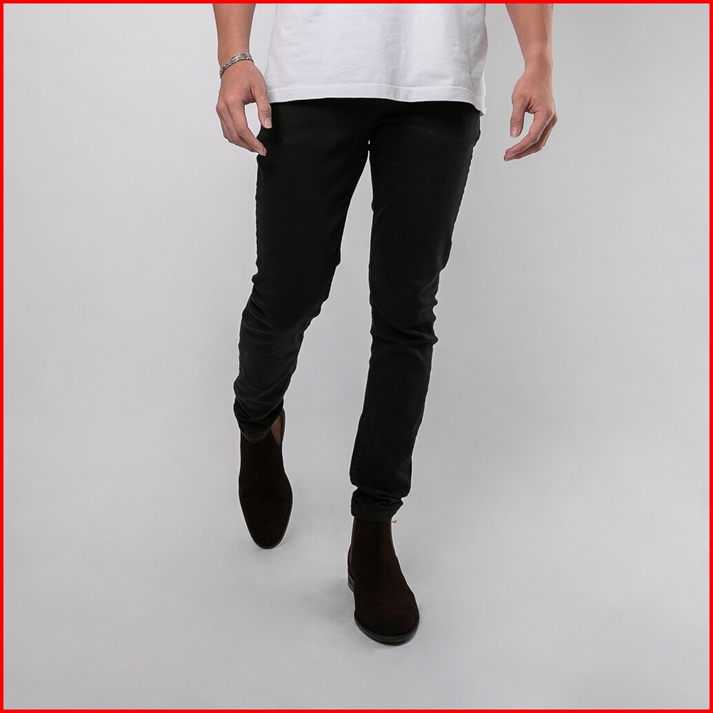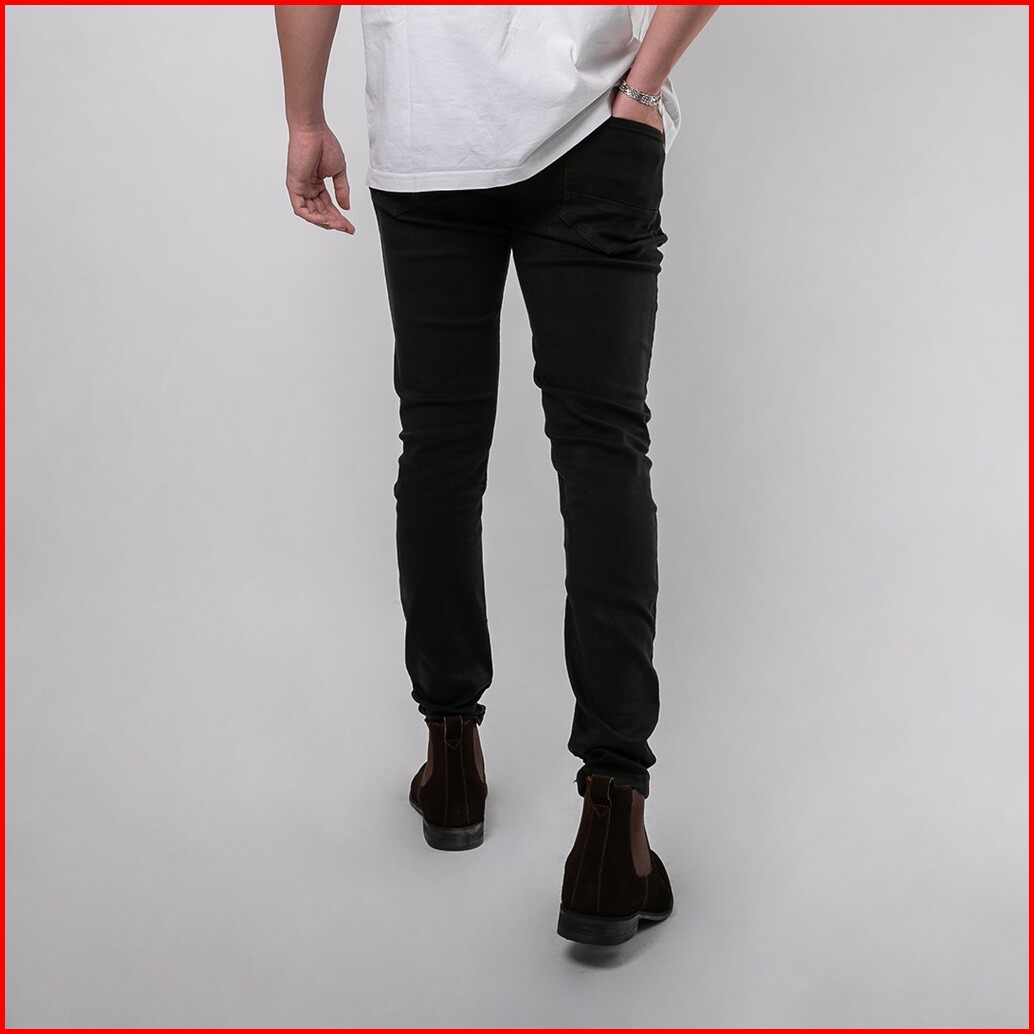 Celana Skinny Fit Jeans Pria Bahan Soft Stretch Denim Warna Hitam Uj - 02