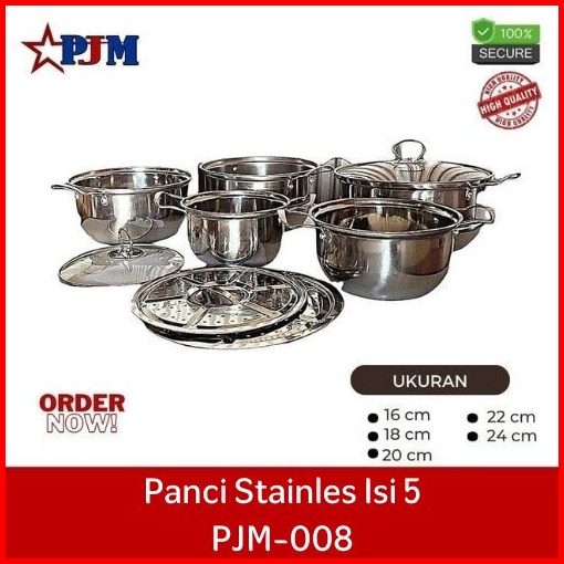 Panci 5 Set Panci Stainless Isi 5 Termurah Panci Anti Lengket Pjm009
