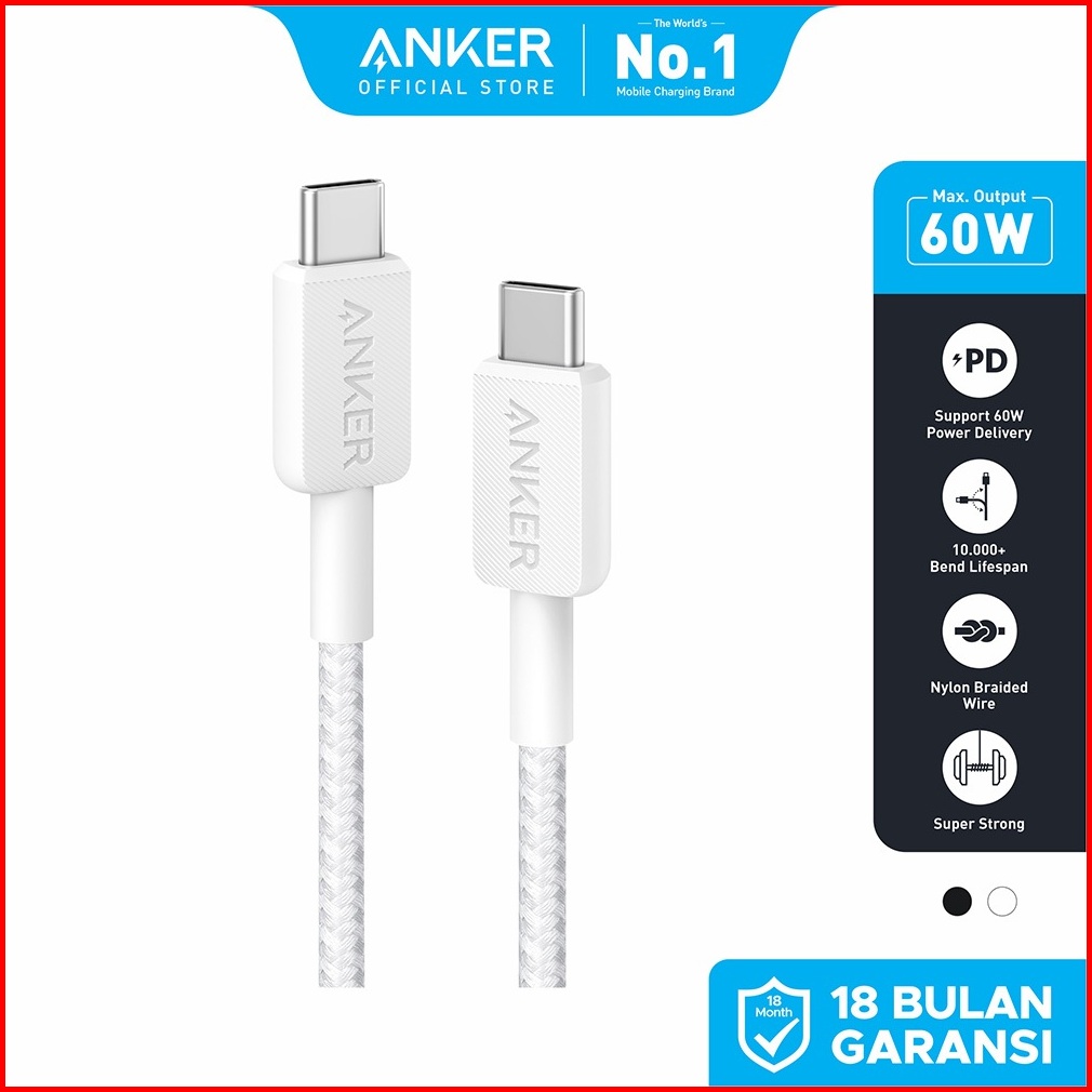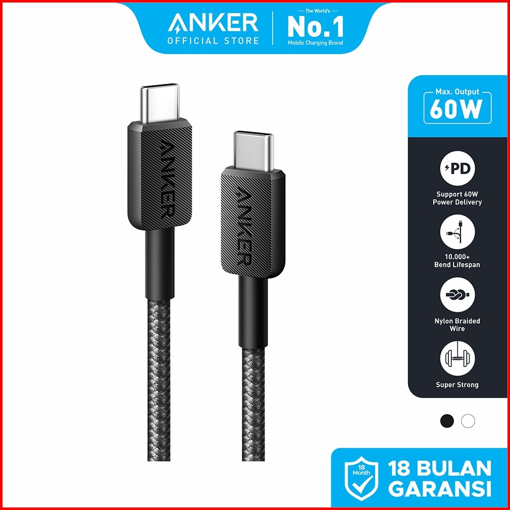 Kabel Charger Anker 322 Usb-c To Usb-c Cable 3ft Braided - A81f5