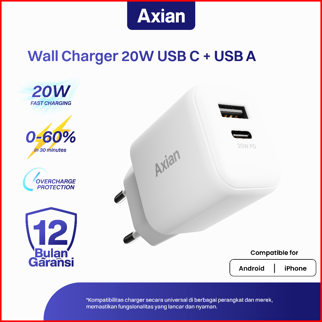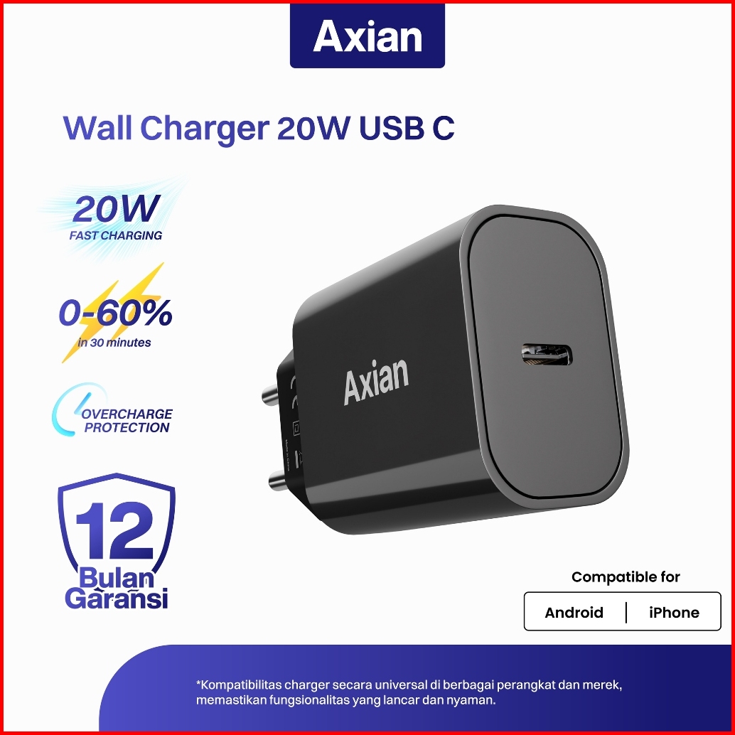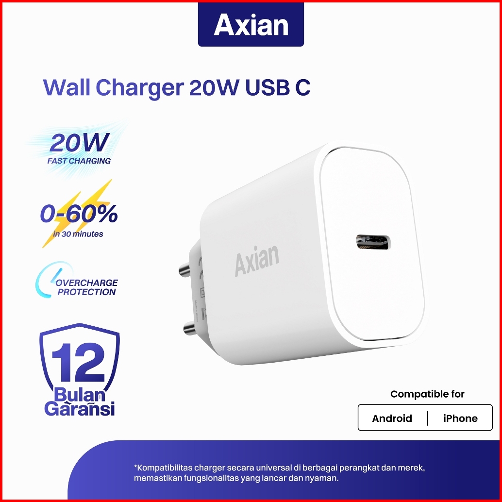 Axian Kepala Charger Iphone 16 15 14 13 12 11 Xr Xs X Adaptor Fast Charging Usb-c 20w Pd