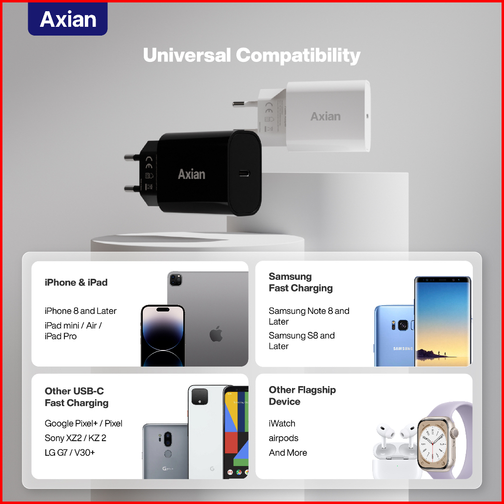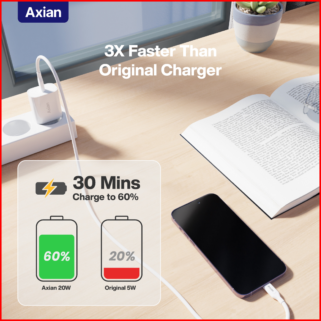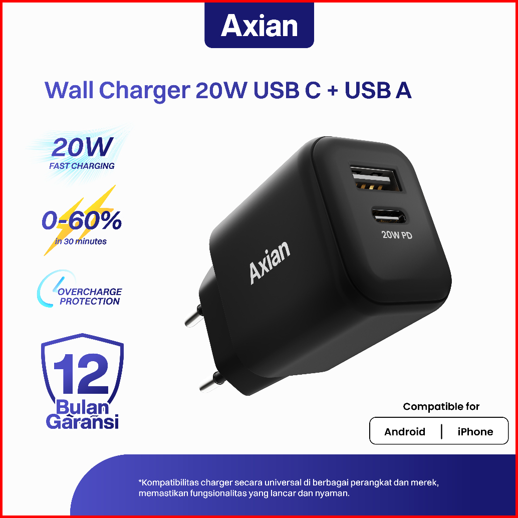 Axian Kepala Charger Iphone 16 15 14 13 12 11 Xr Xs X Adaptor Fast Charging Usb-c 20w Pd