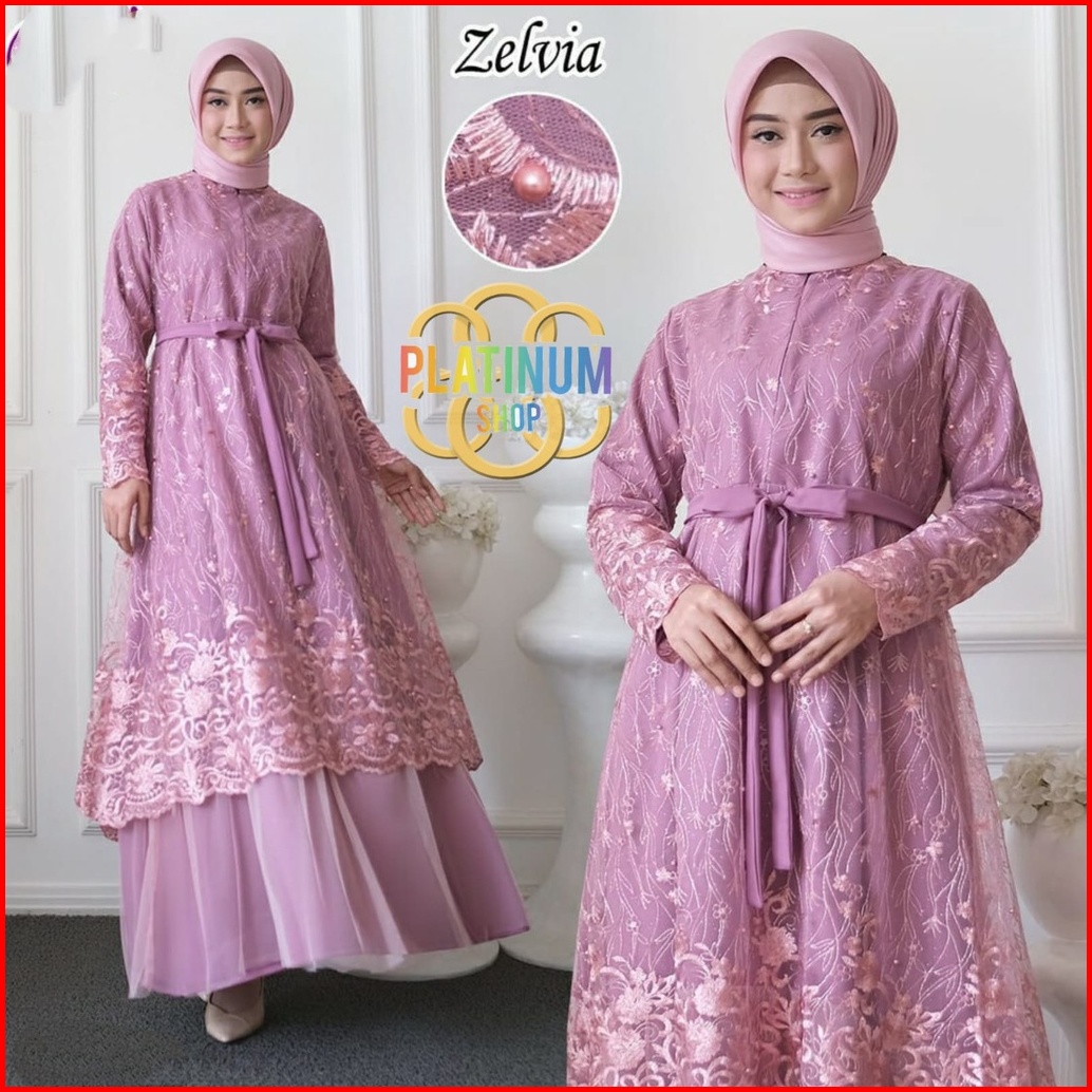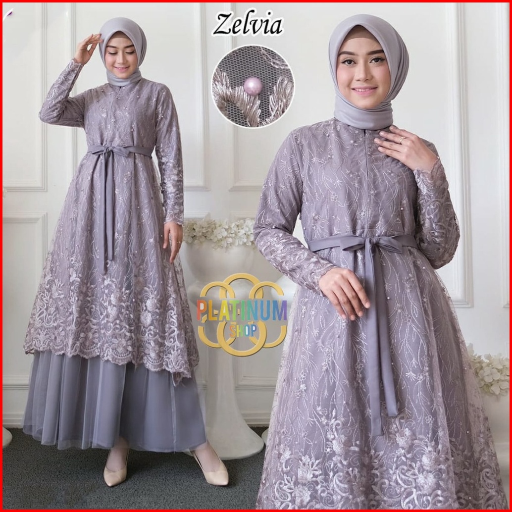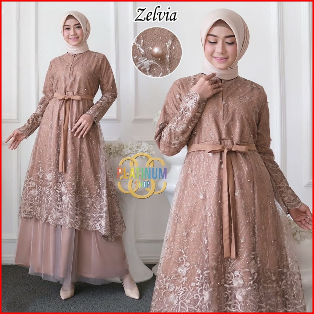 Gamis Maxi Busui Zelvia Full Brukat Tile Mutiara