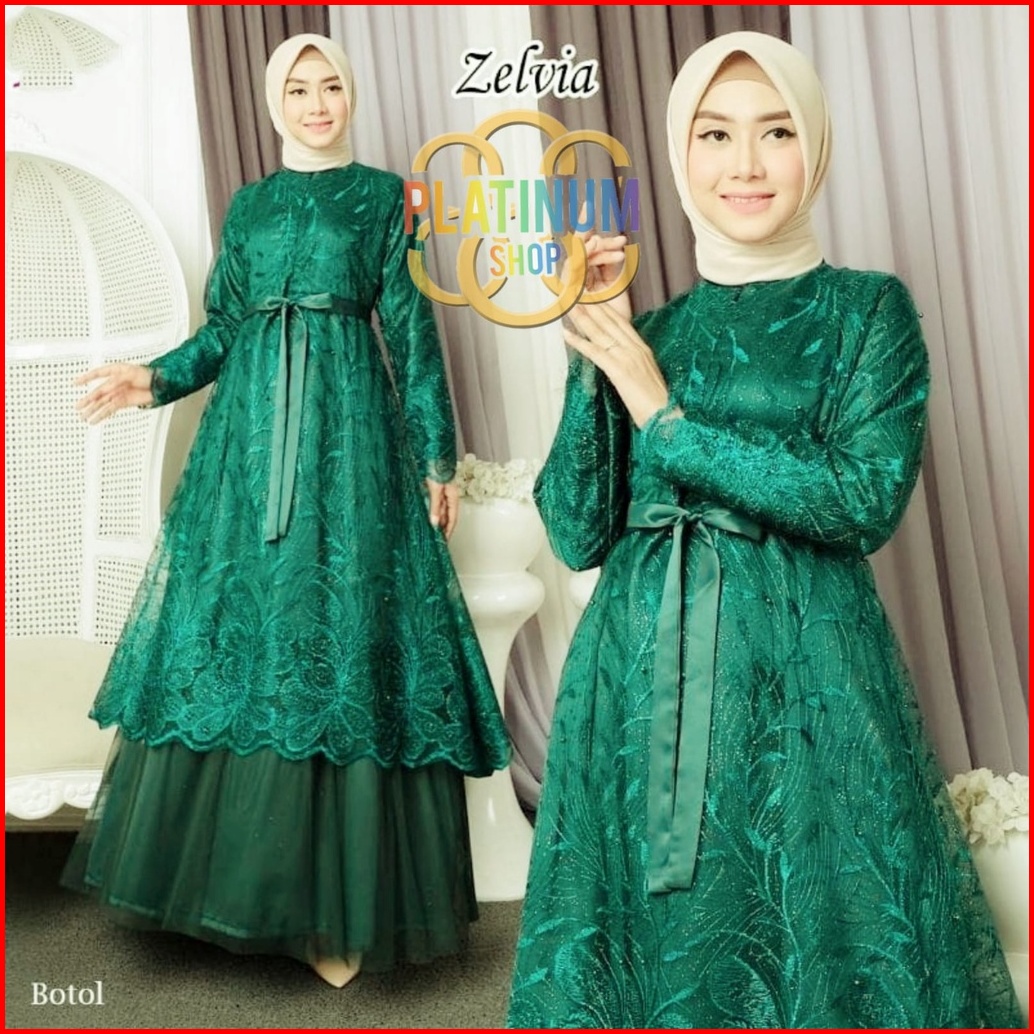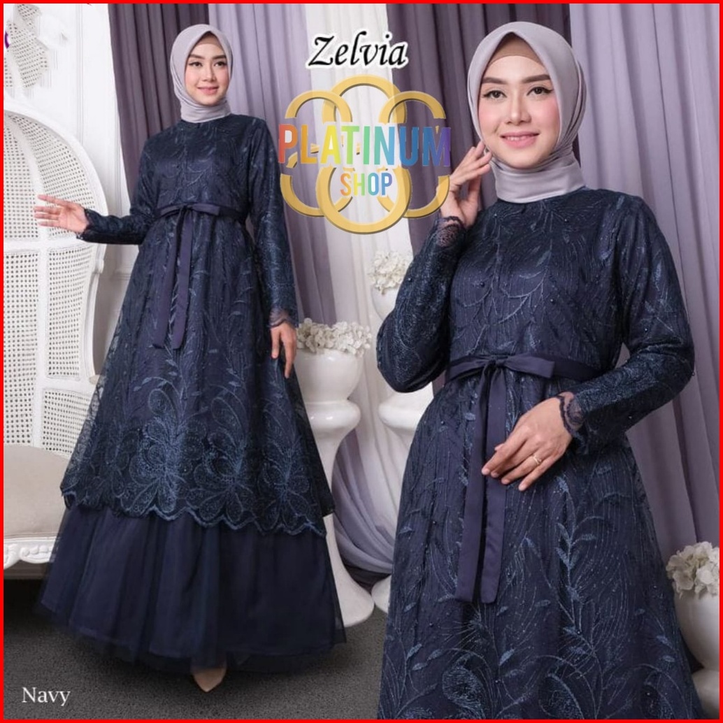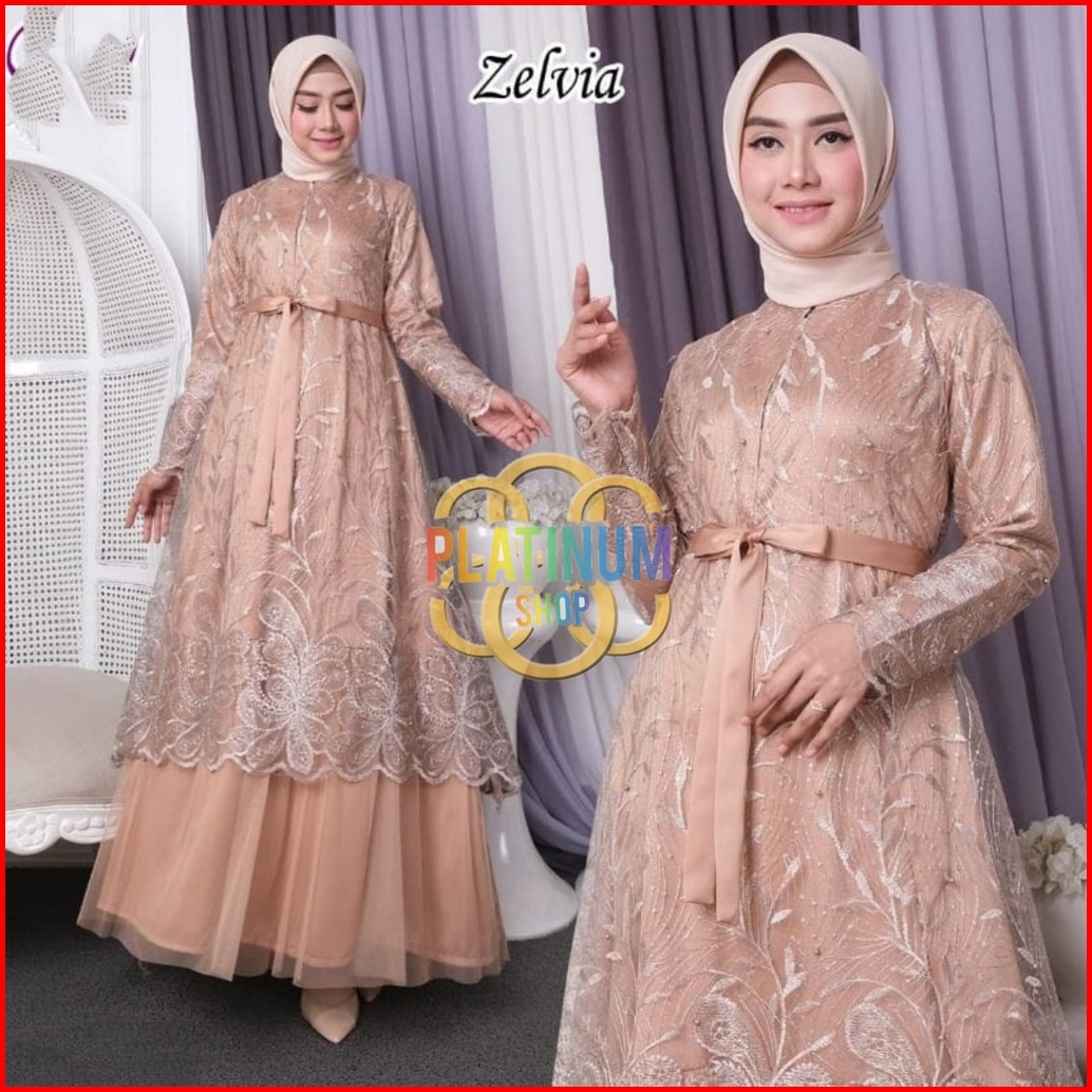 Gamis Maxi Busui Zelvia Full Brukat Tile Mutiara