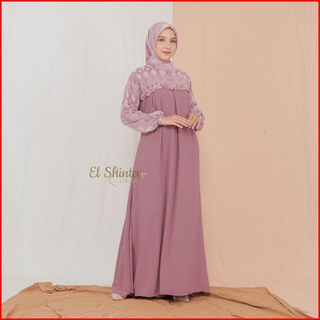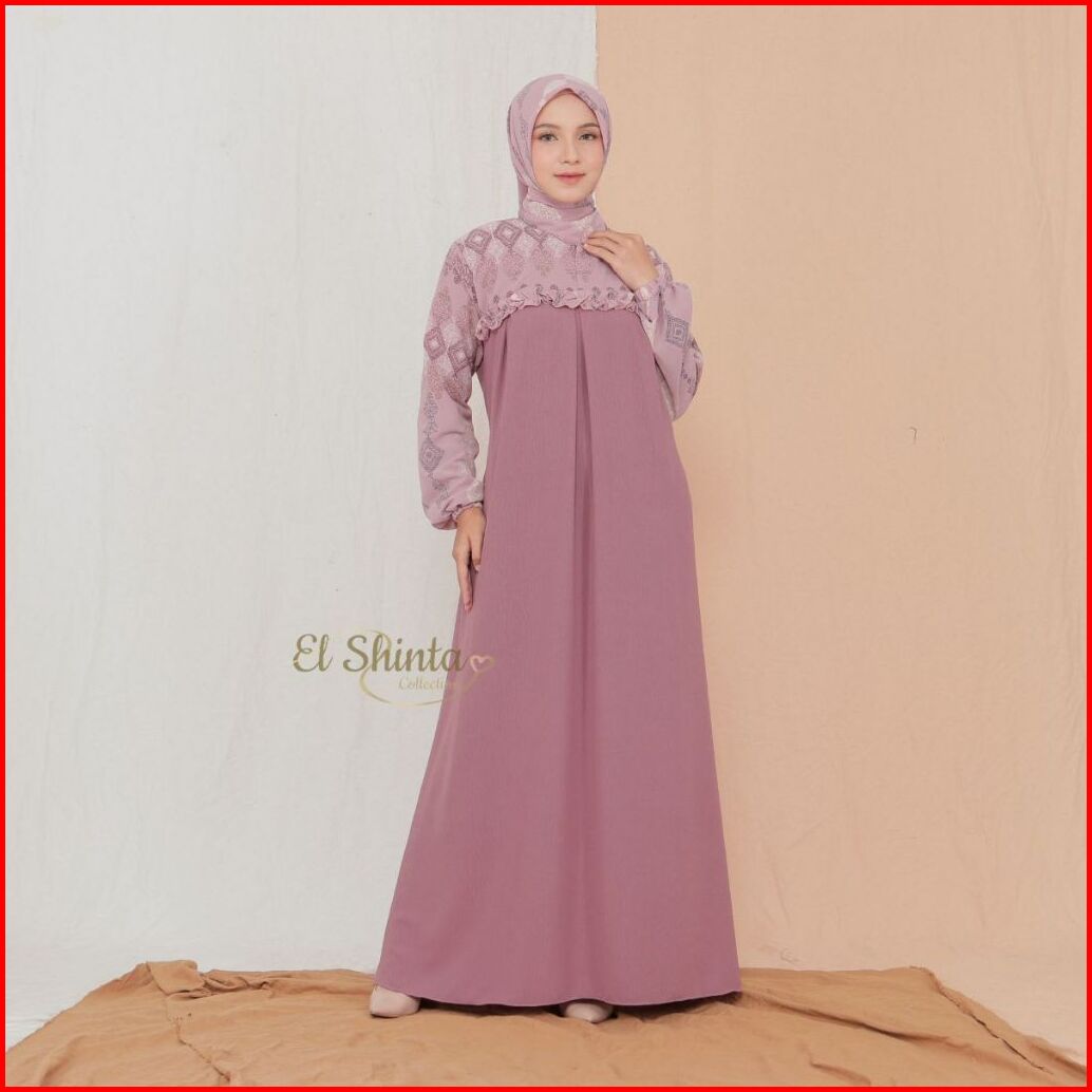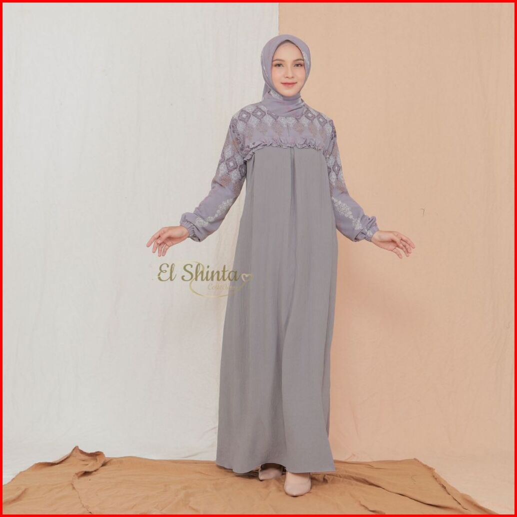 Gamis Elegan Ceruty Etnik Mix Crinkle Airflow Amira Set Hijab Kekinian