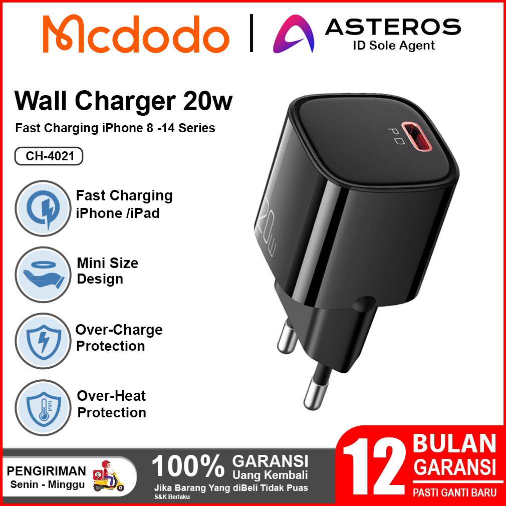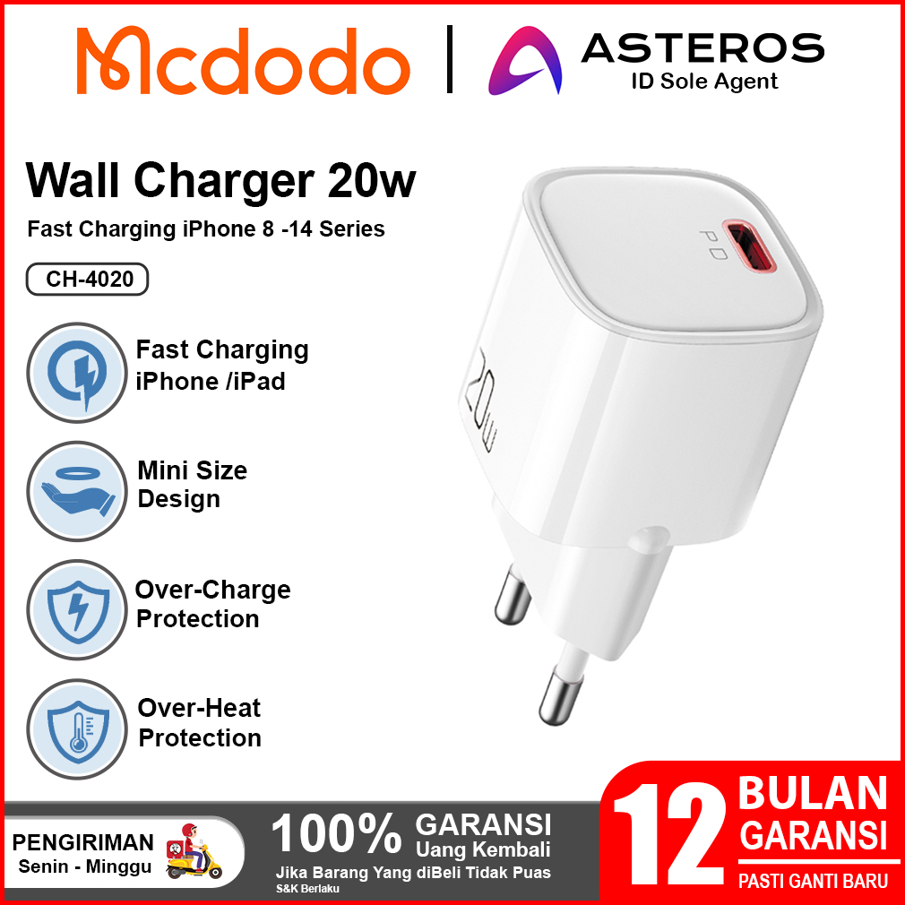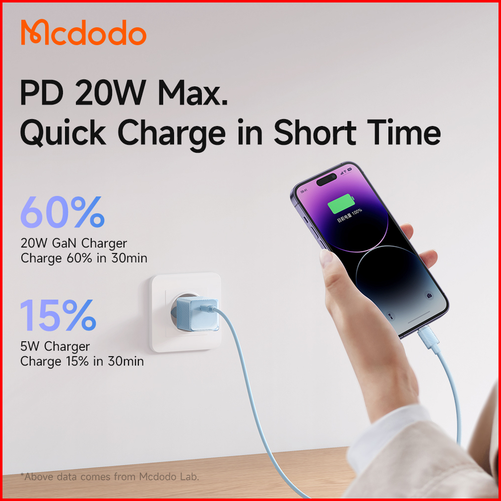 Mcdodo Kepala Charger For Iphone Gan Mini Size Pd Fast Charging 20w Ch-377