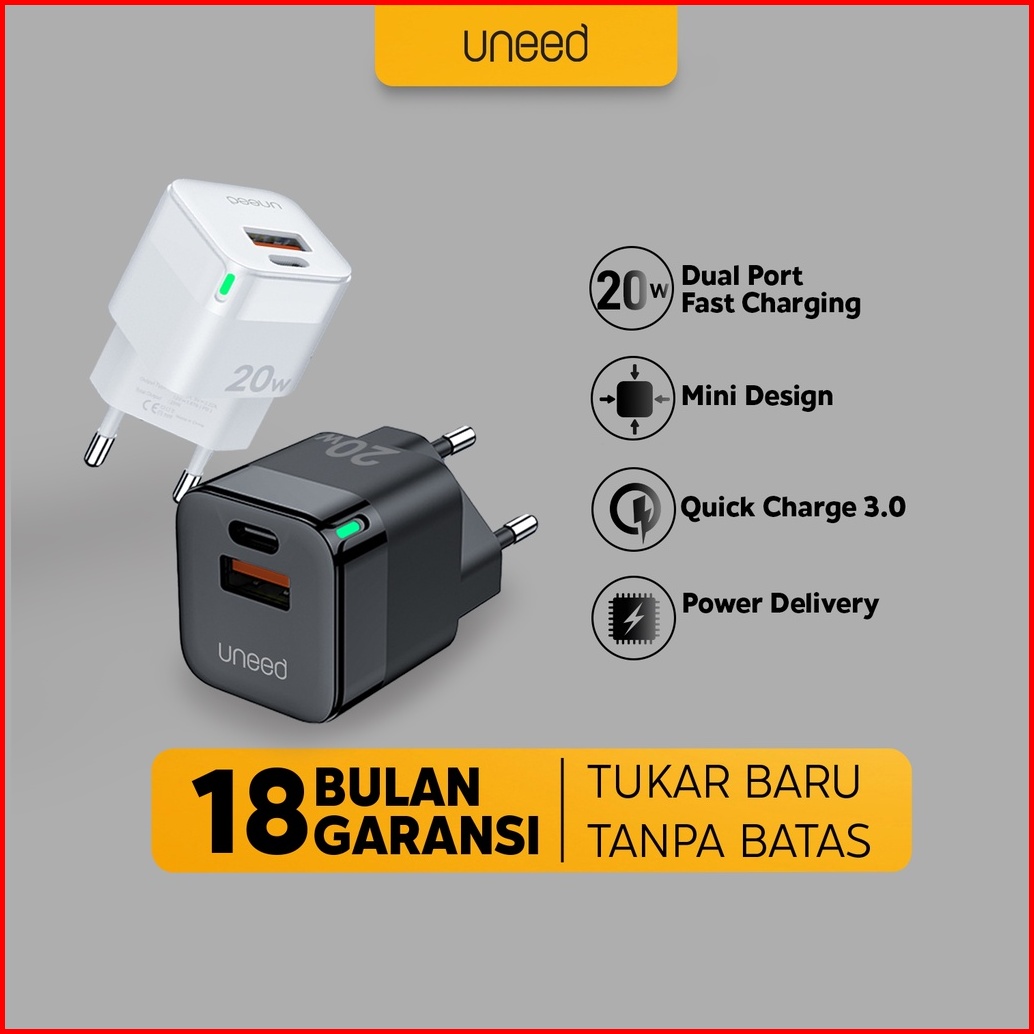 Uneed Mini Wall Fast Charger Dual Port 20w Pd 3.0 Qc 4.0 Pps - Uch425