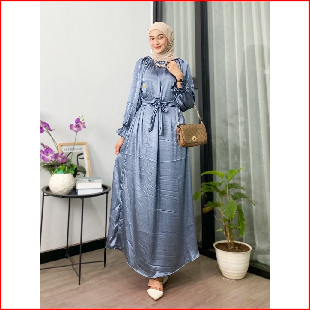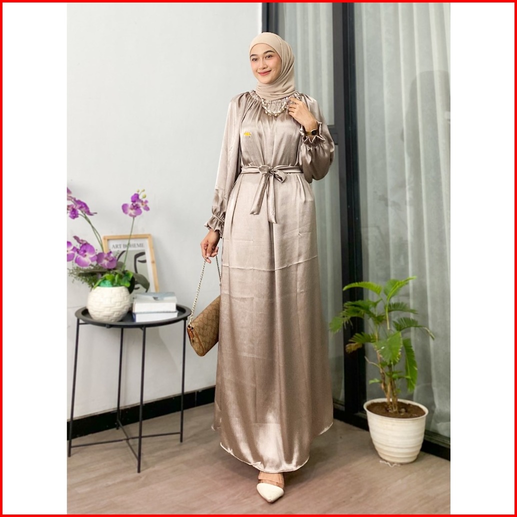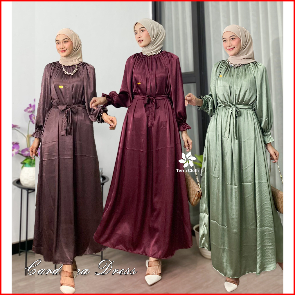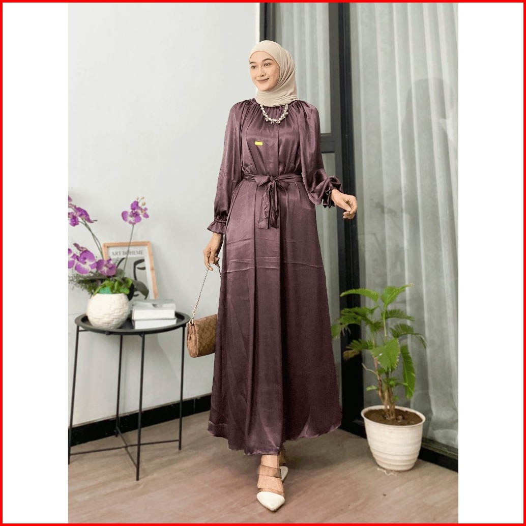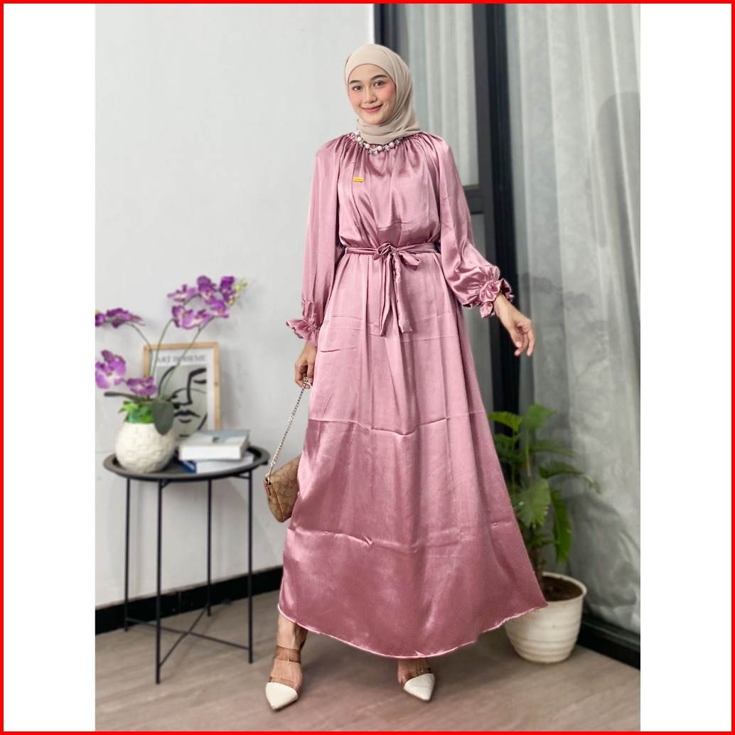 Casandra Dress Satin Silk Gamis Cradenza Silk Busui Friendly Gamis Kondangan Viral Terbaru Gamis Armany Silk Motif Baju