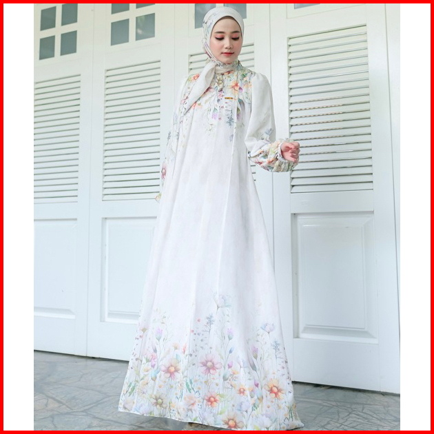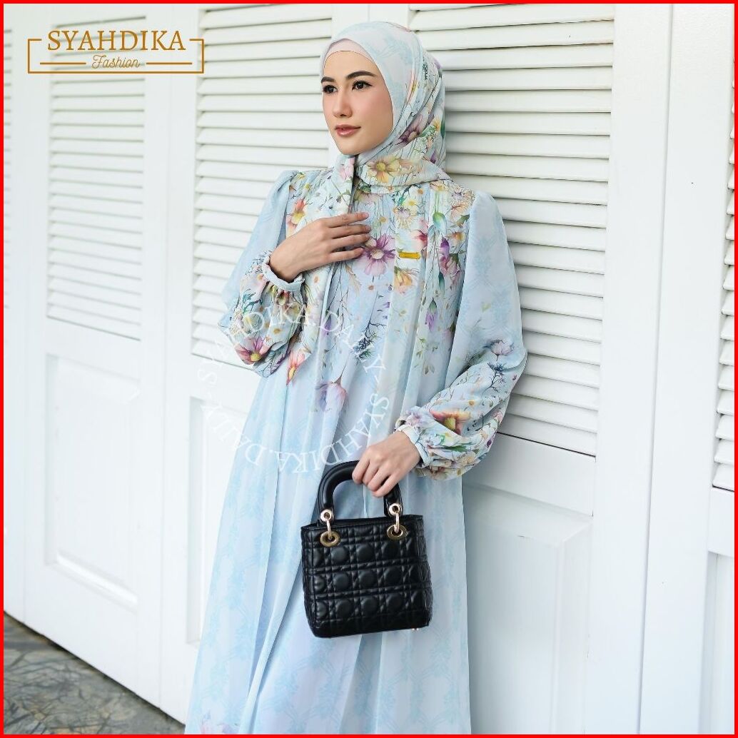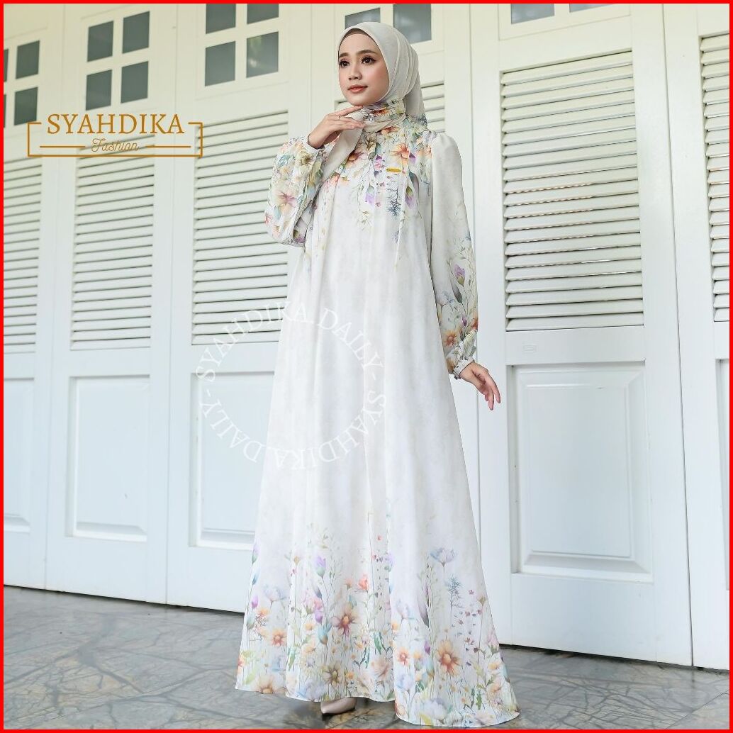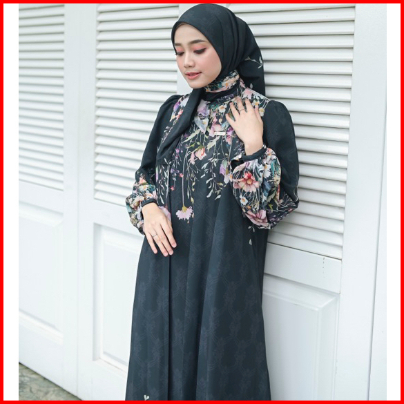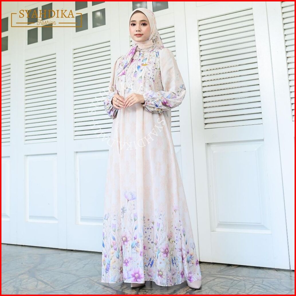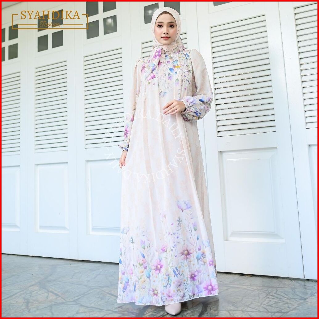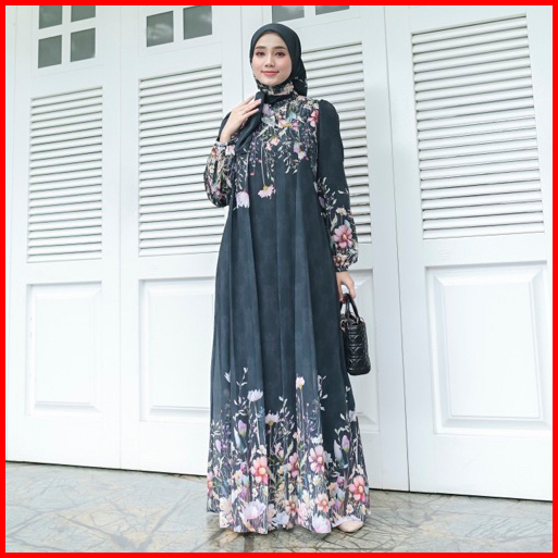 Free Hijab Zhafirah Flower Dress Gamis Wanita Kekinian Ceruty Baby Doll Premium