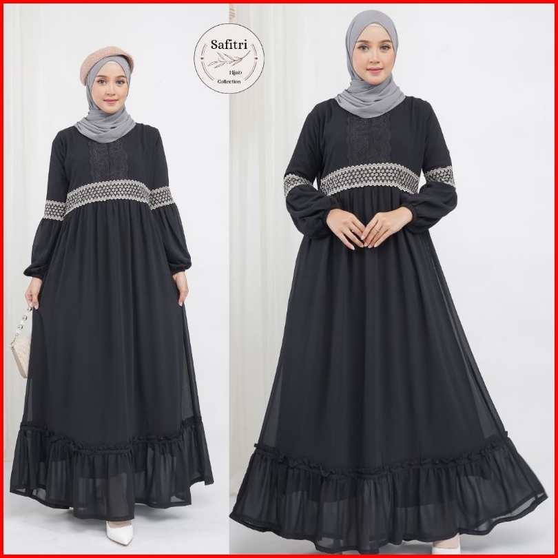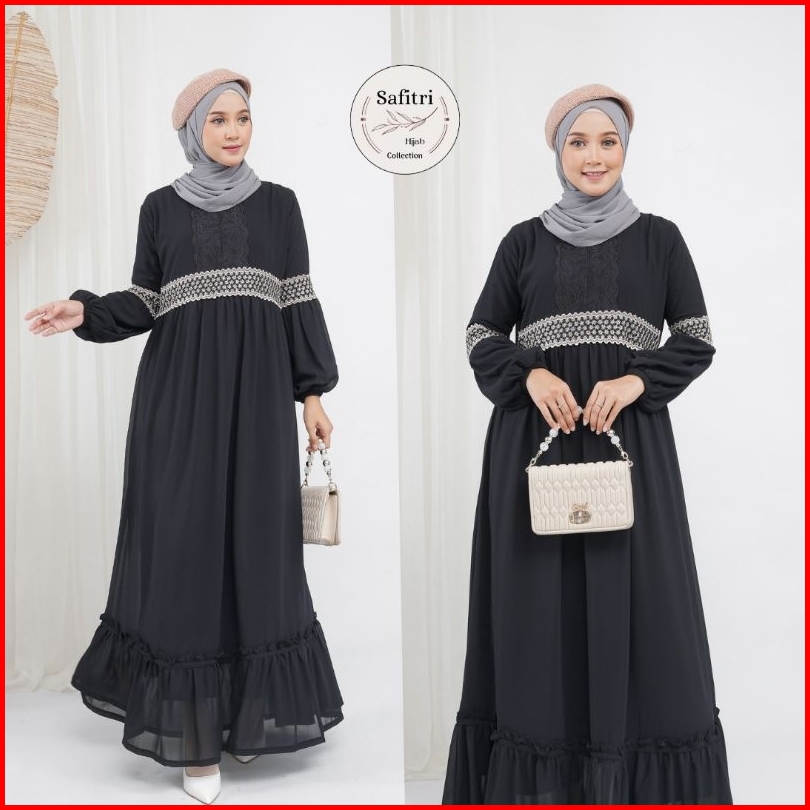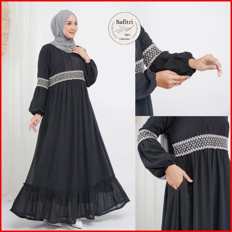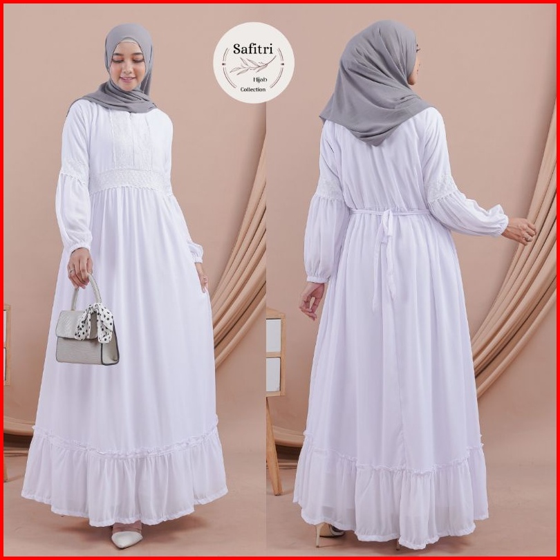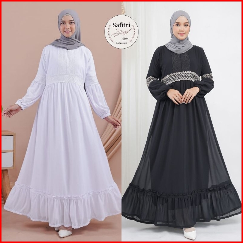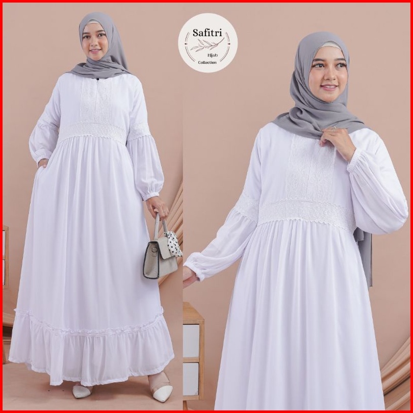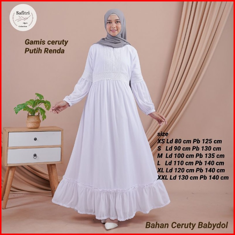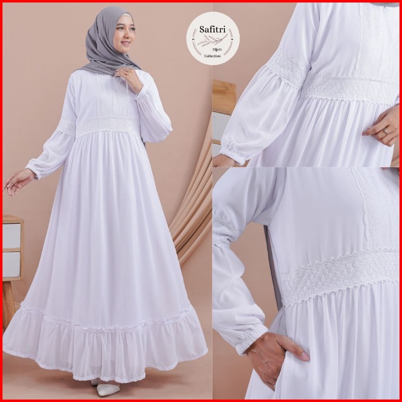 Medina Dress Bahan Ceruty Renda Rampel Putih Hitam Manasik Haji Umroh Thawaf By Safitri Fashion