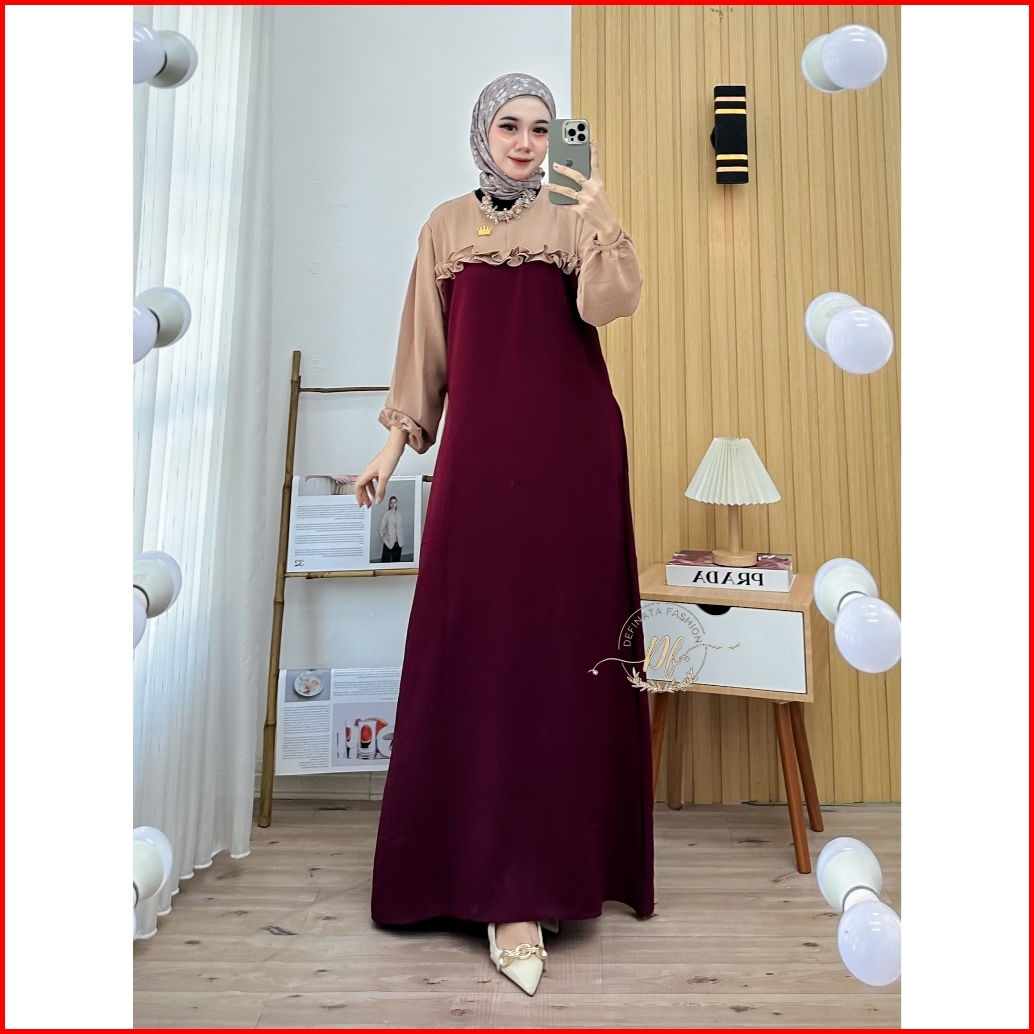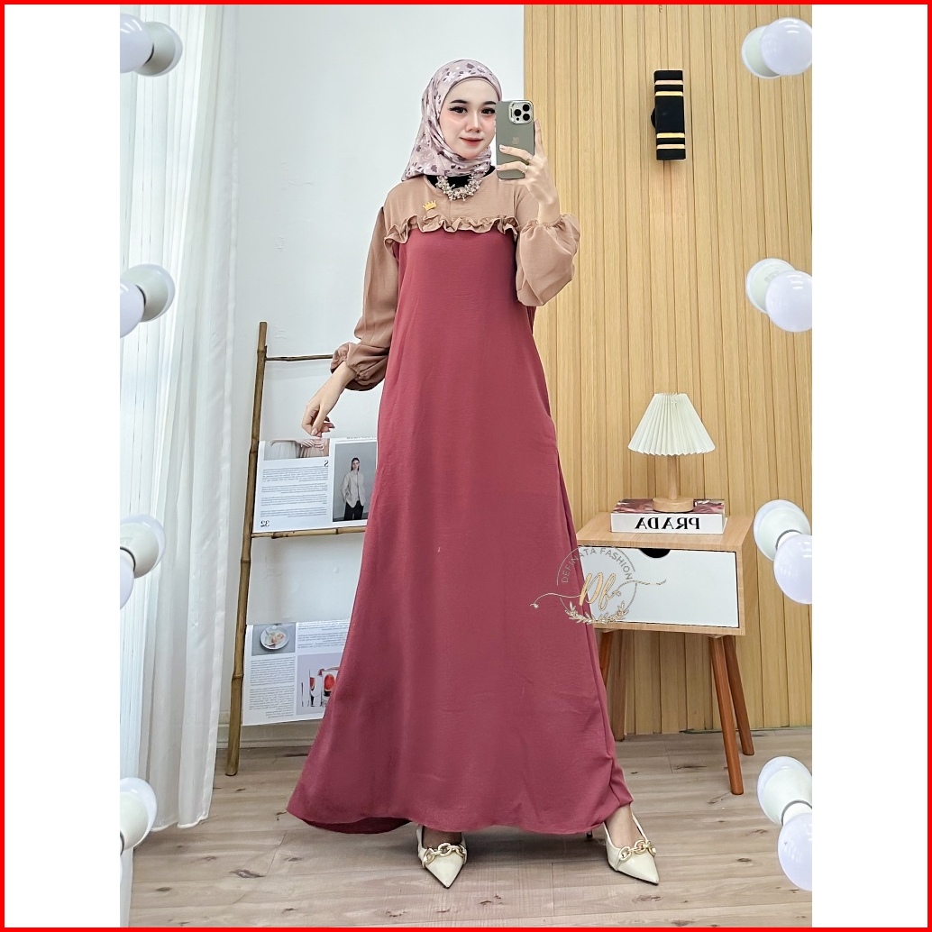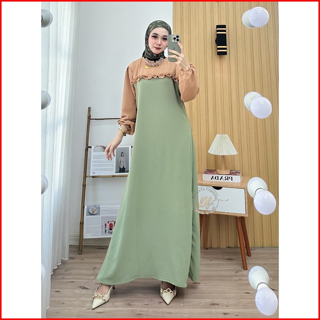 Free Hijab Voal Malaya Dress Set Hijab Crinkle Airflow Premium Lengan Karet Free Pin Bross