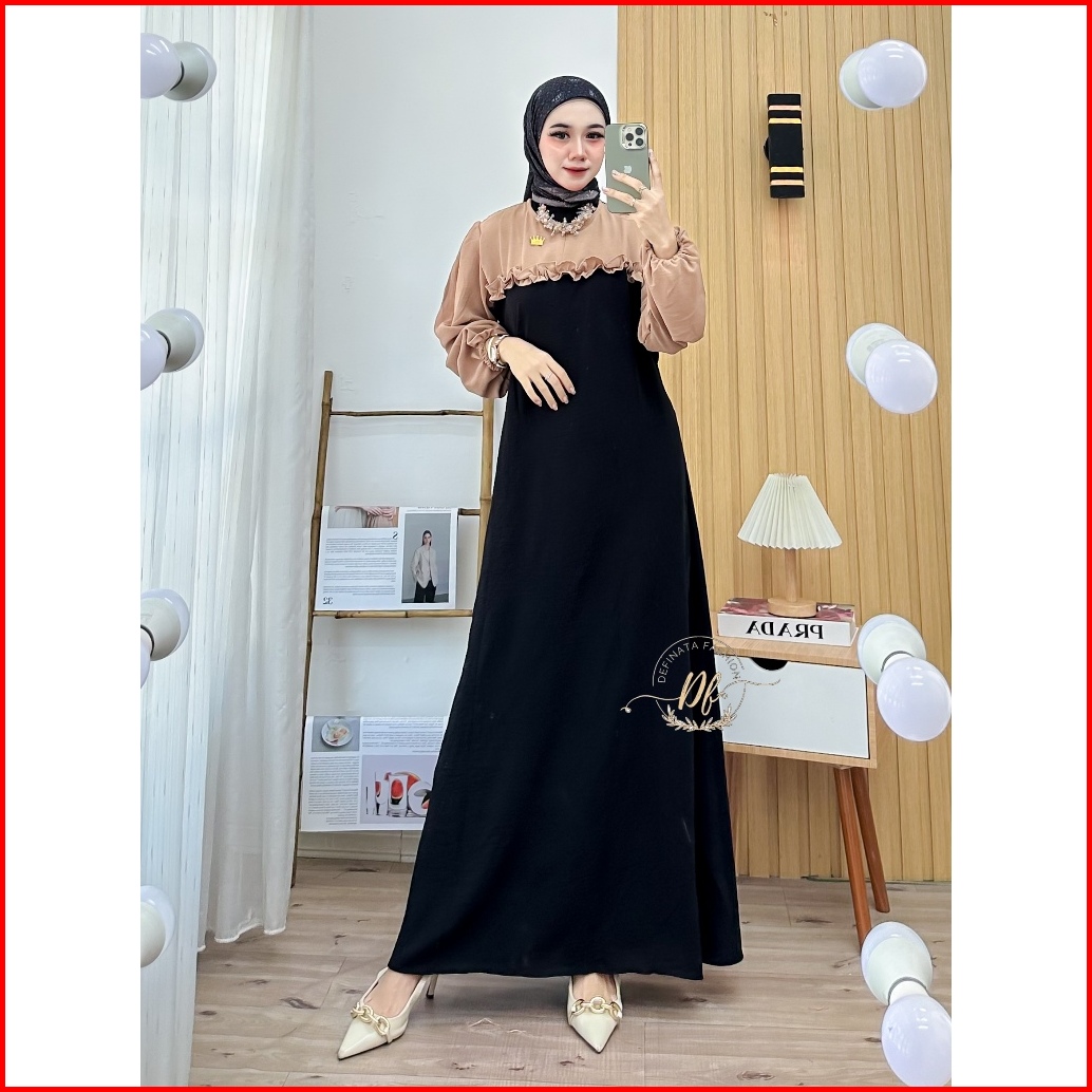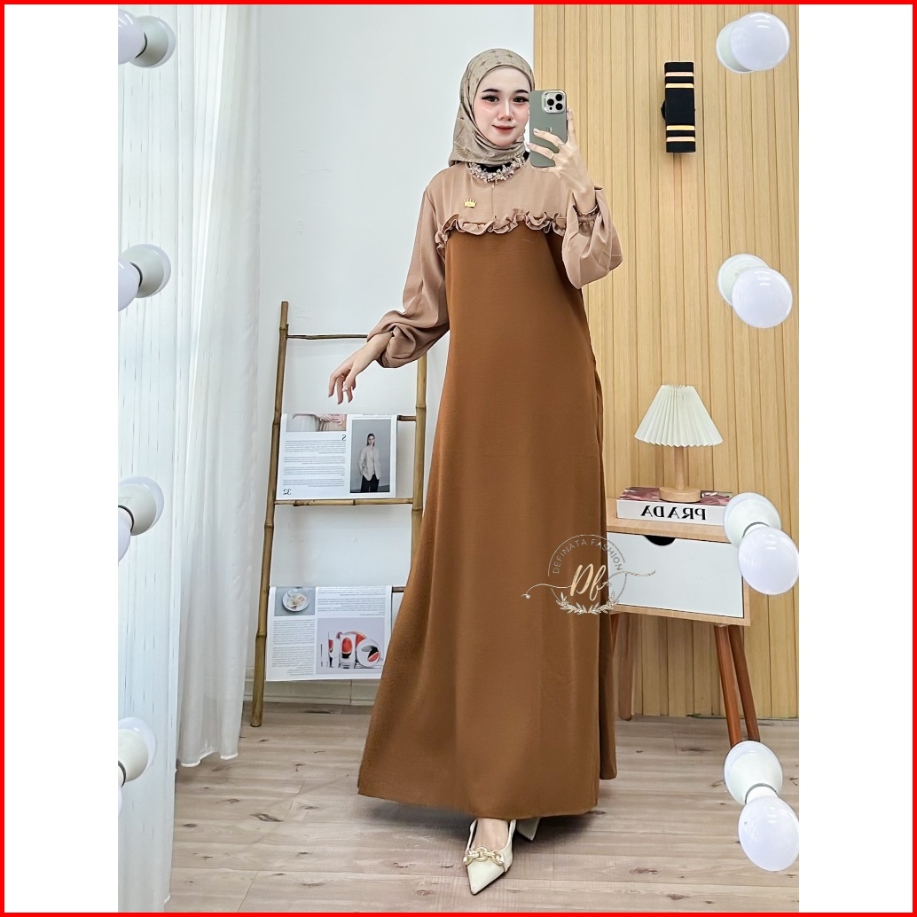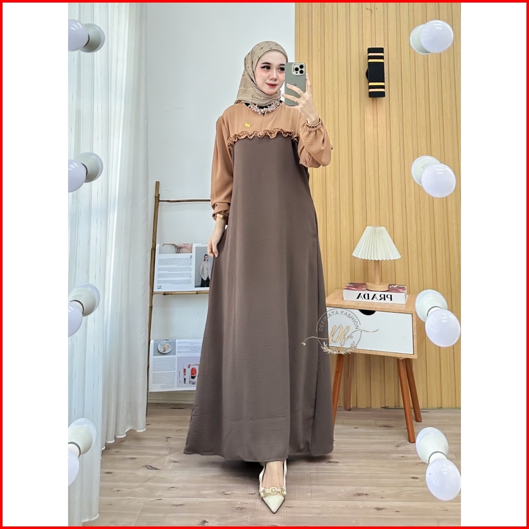 Free Hijab Voal Malaya Dress Set Hijab Crinkle Airflow Premium Lengan Karet Free Pin Bross