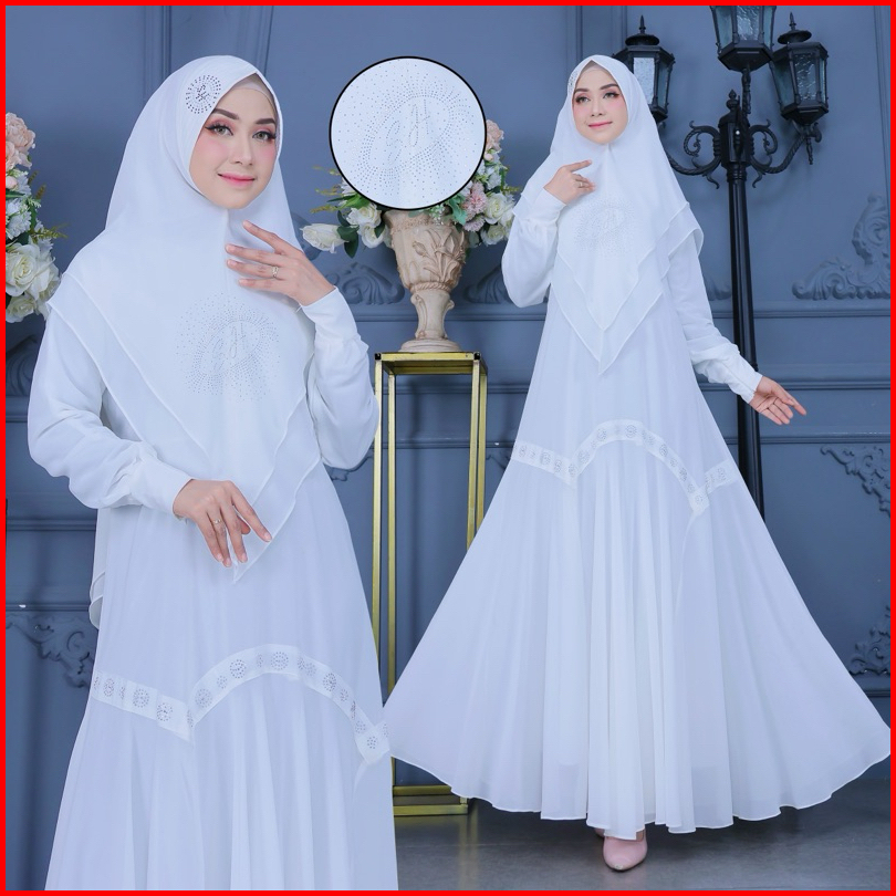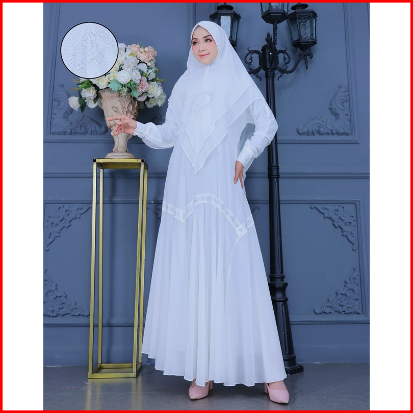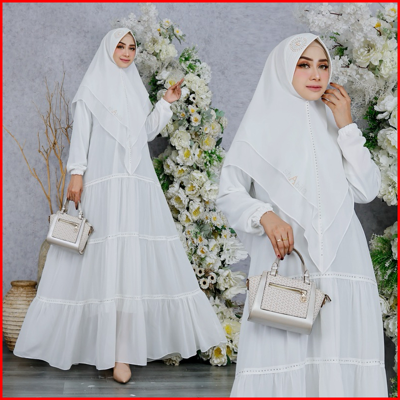 Jasmin Set Syari Putih Syari Untuk Umroh Gamis Simple Elegant
