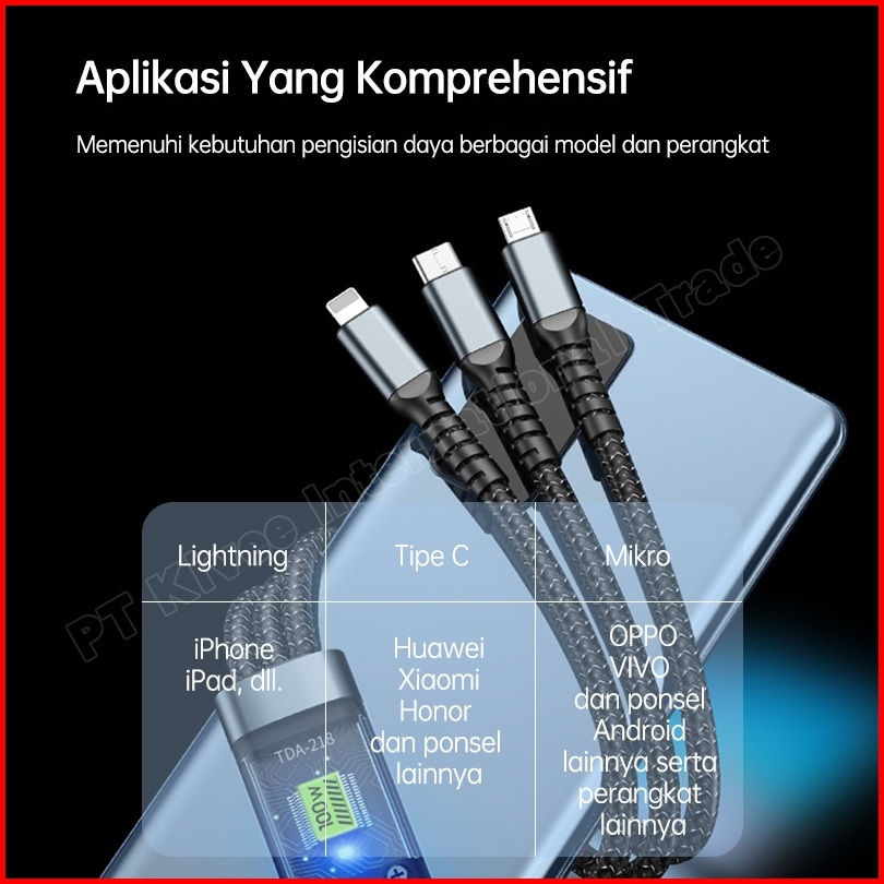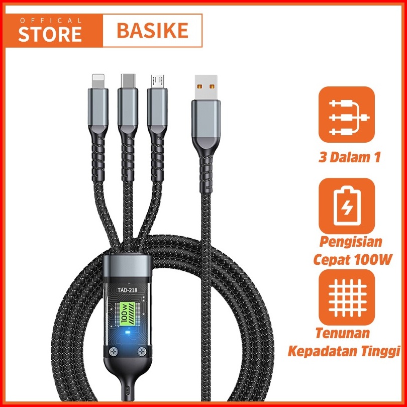 Hot Basike Kabel Data Iphone Fast Charging 100w Type C Lightning Micro Usb 3 In 1 Safe High Speed