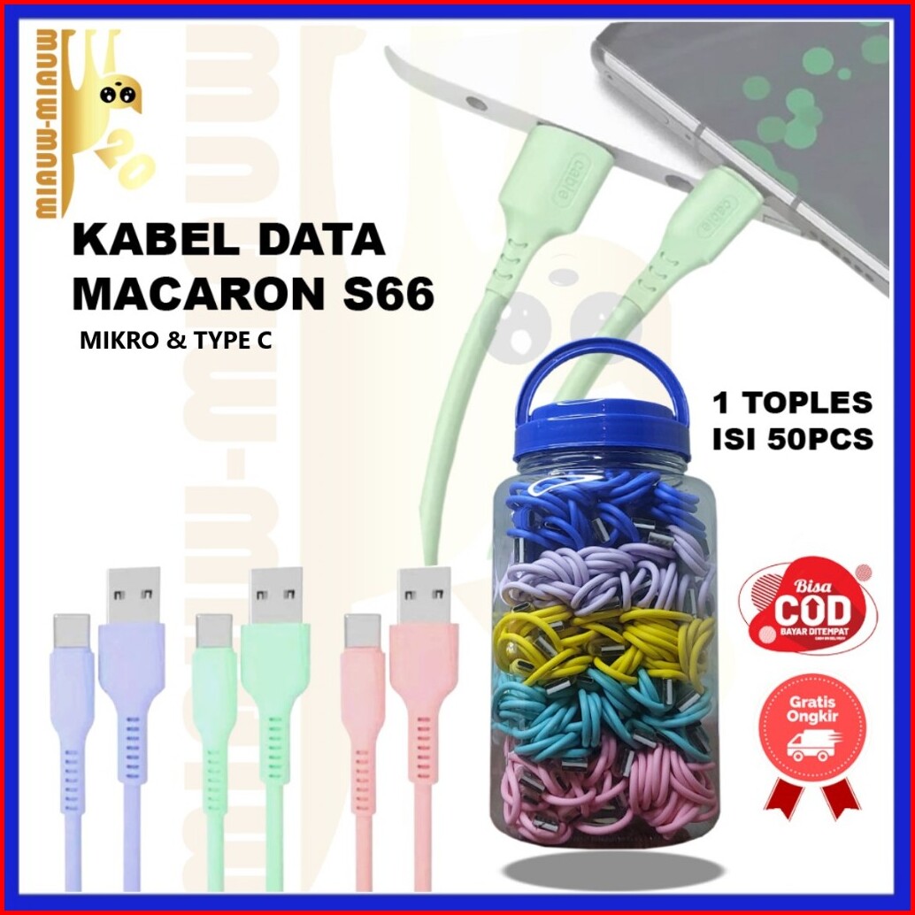 Kabel Casan Kabel Data Mikro Type C Macaron 1 Toples Isi 50pcs Micro V8 S66