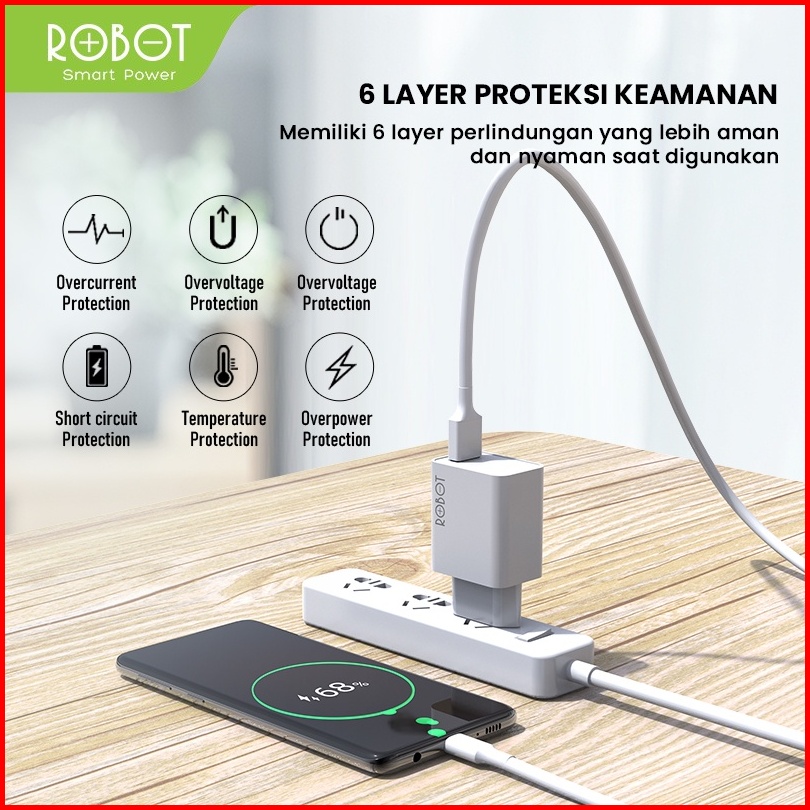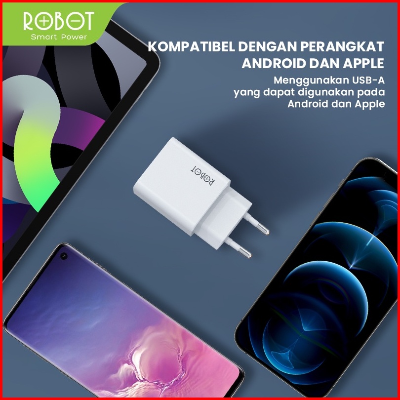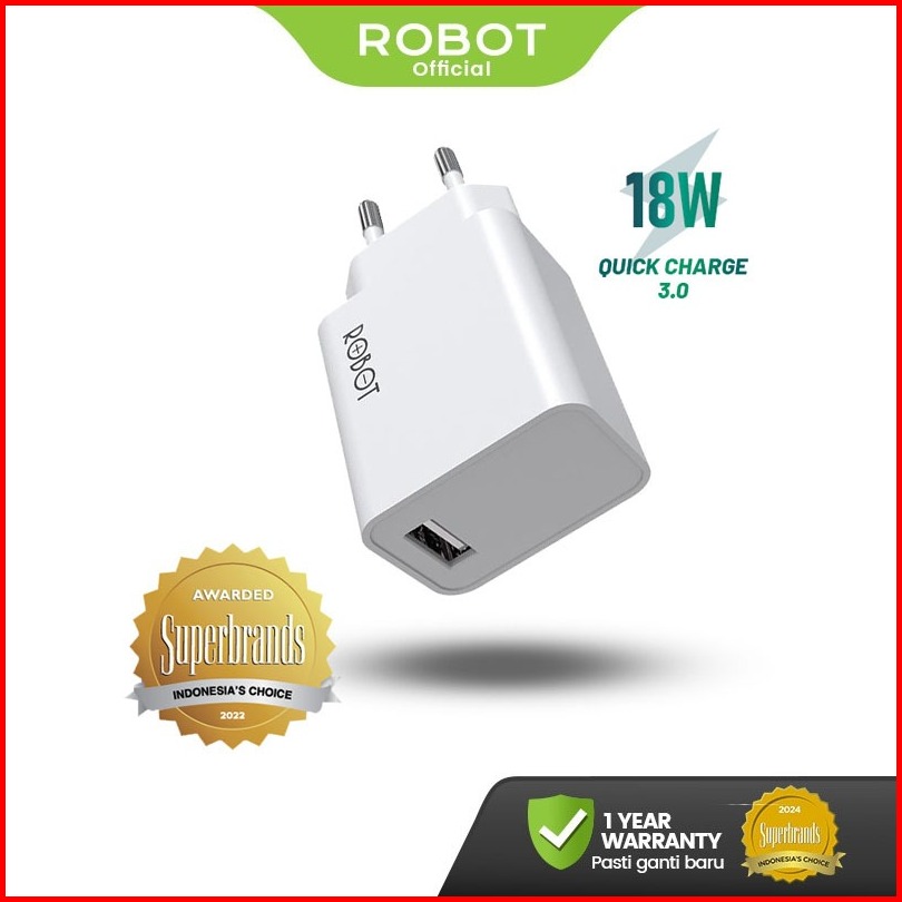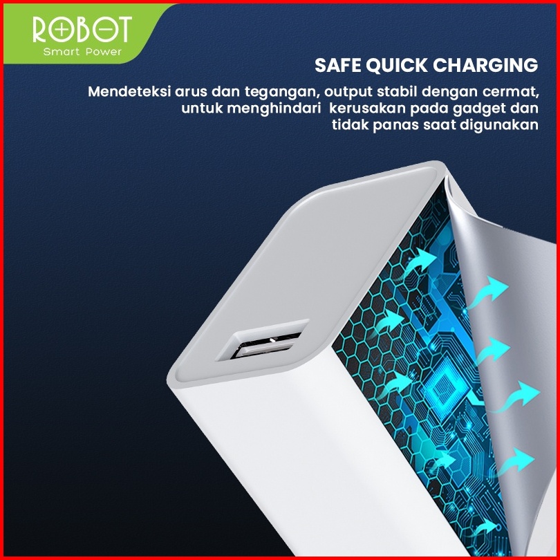 Robot Charger Fast Charging 18w Kepala Universal Adapter Charger Smart Protection Rt-f1 Original - Garansi 1 Tahun