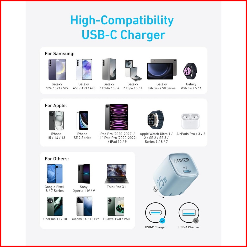 Anker Wall Charger Adaptor 25w 45w Gan Kabel For Samsung Iphone 16 15 Pd Usb Type C Fast Charging Pps